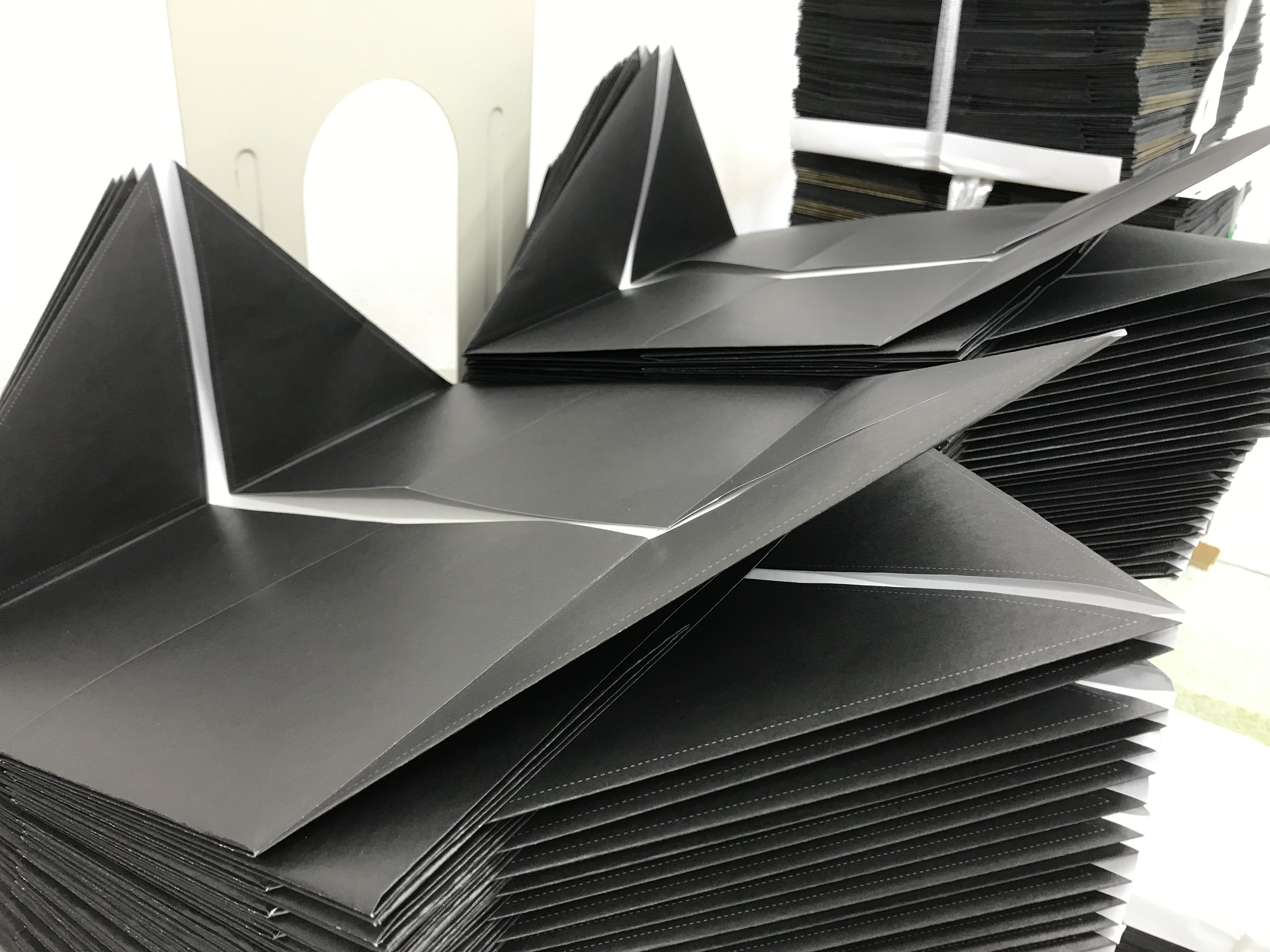 老舗の精肉店様です。重厚感のある手提げ袋をご希望とのことでデザインから手掛けさせていただきました!黒と金色インキの2色使いで印刷しております。