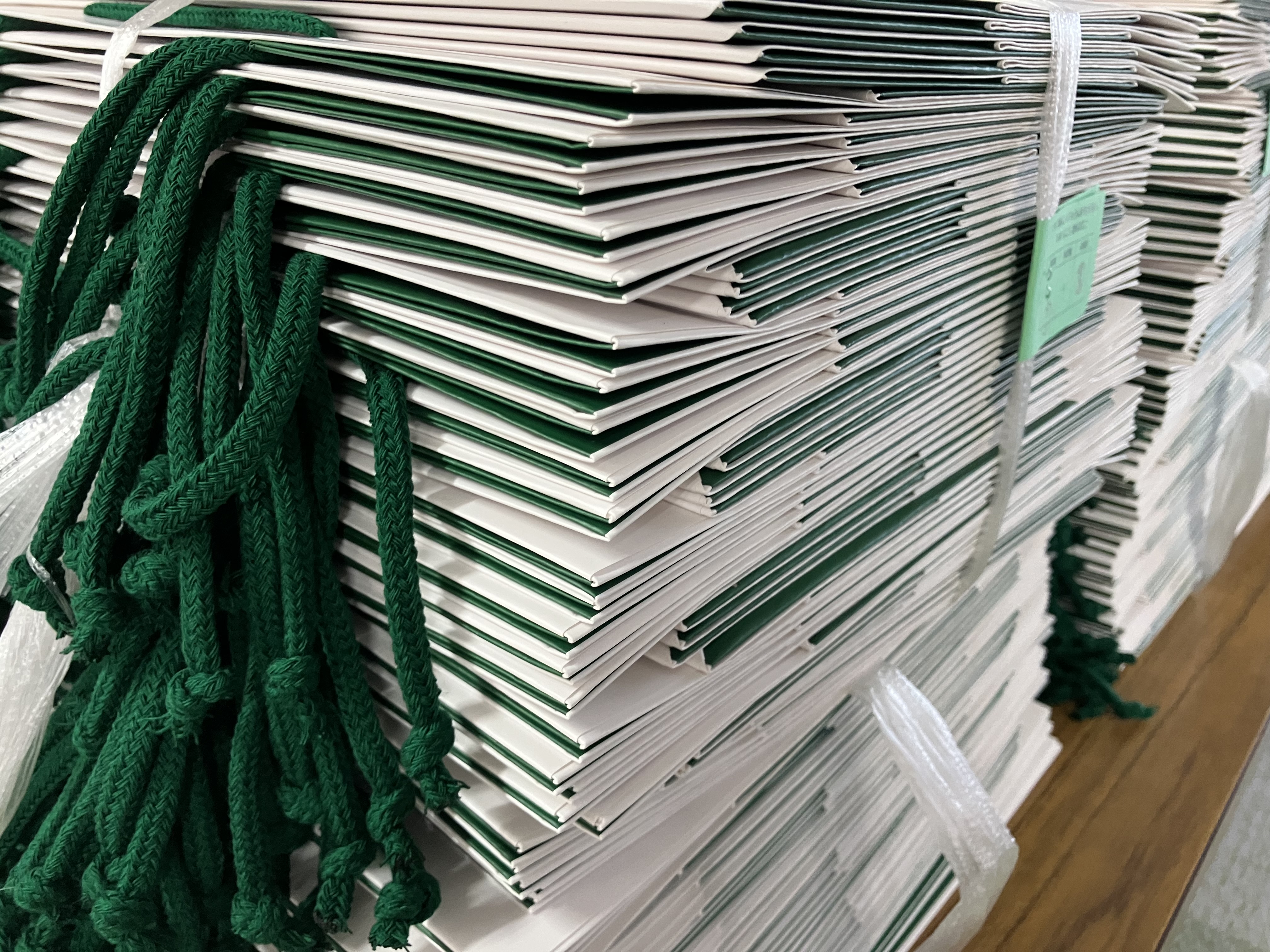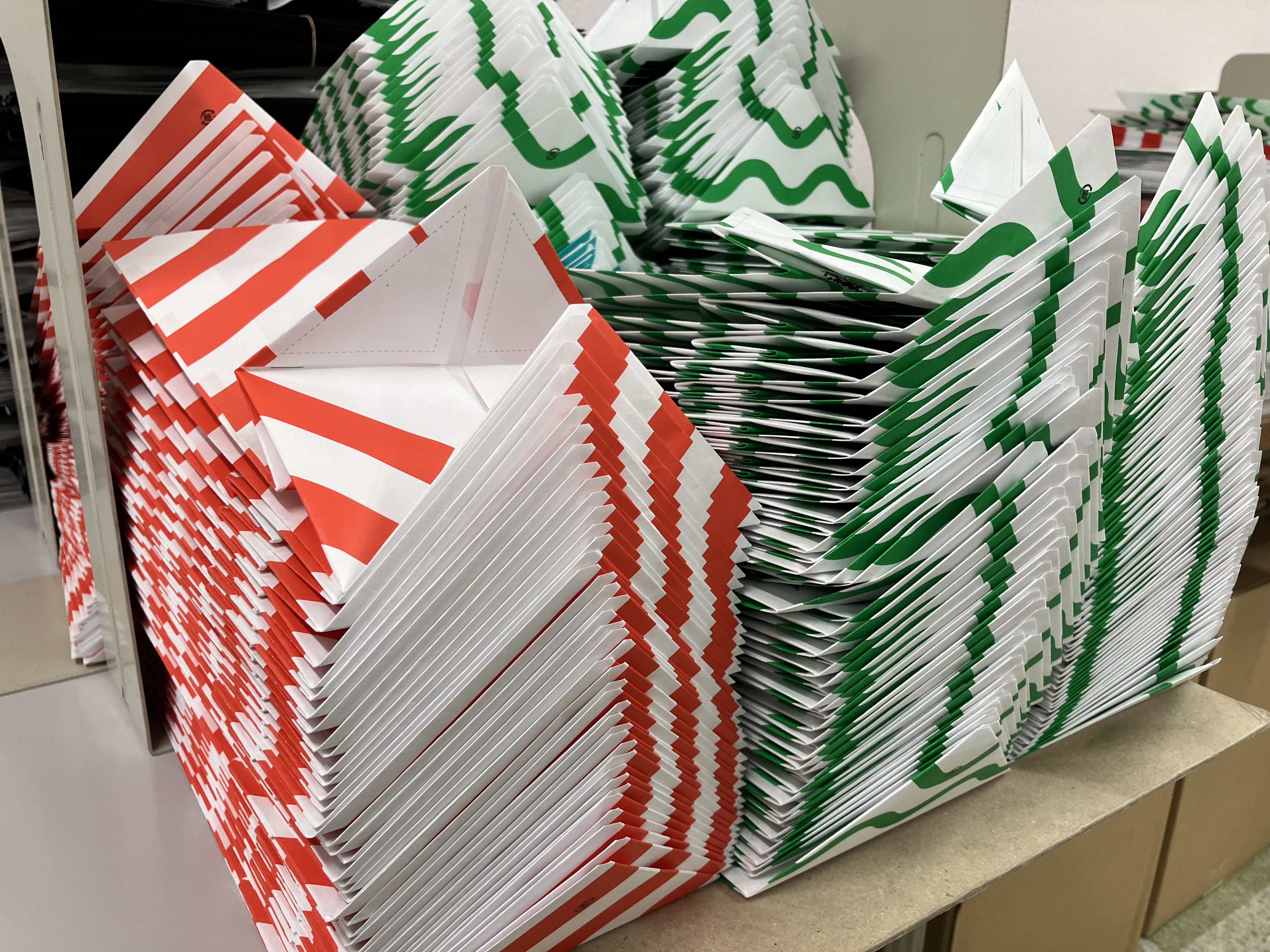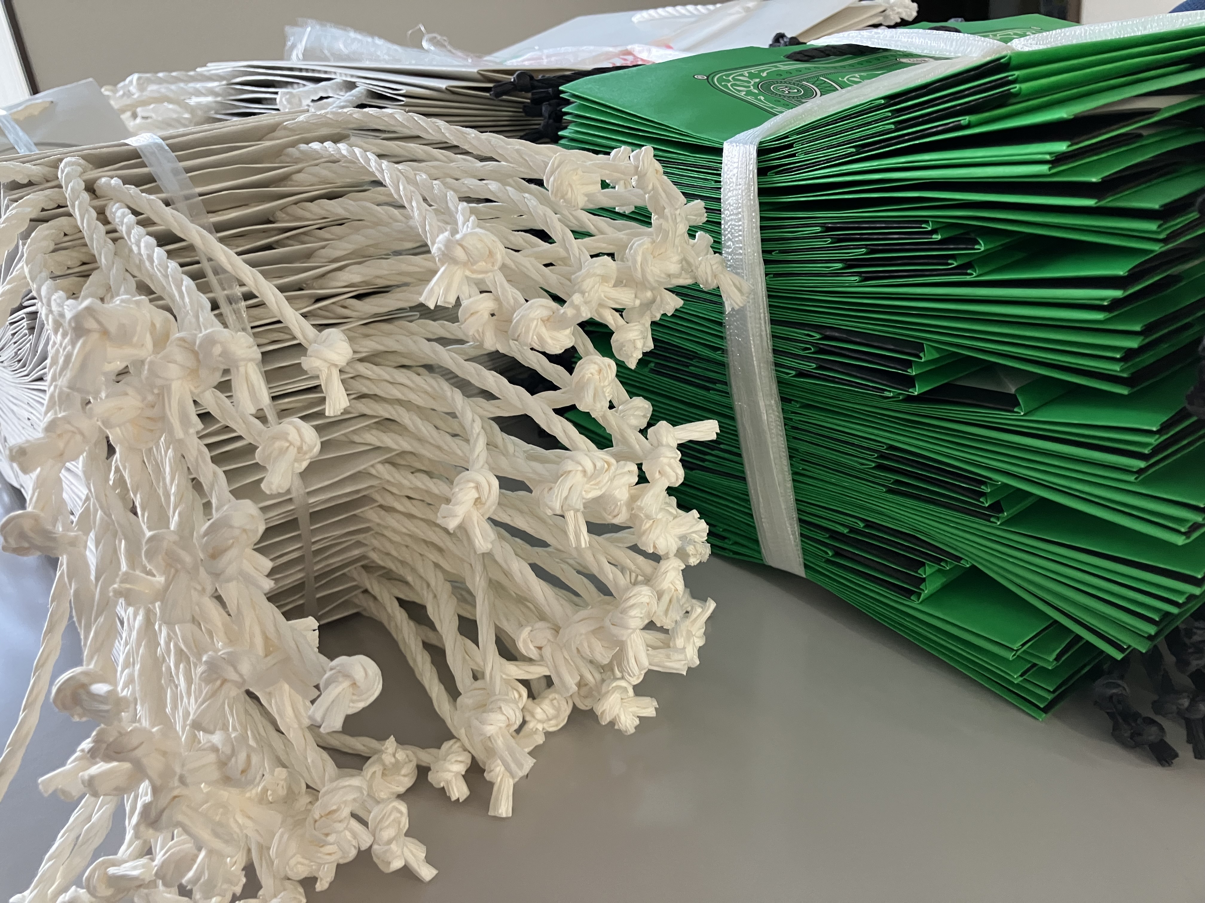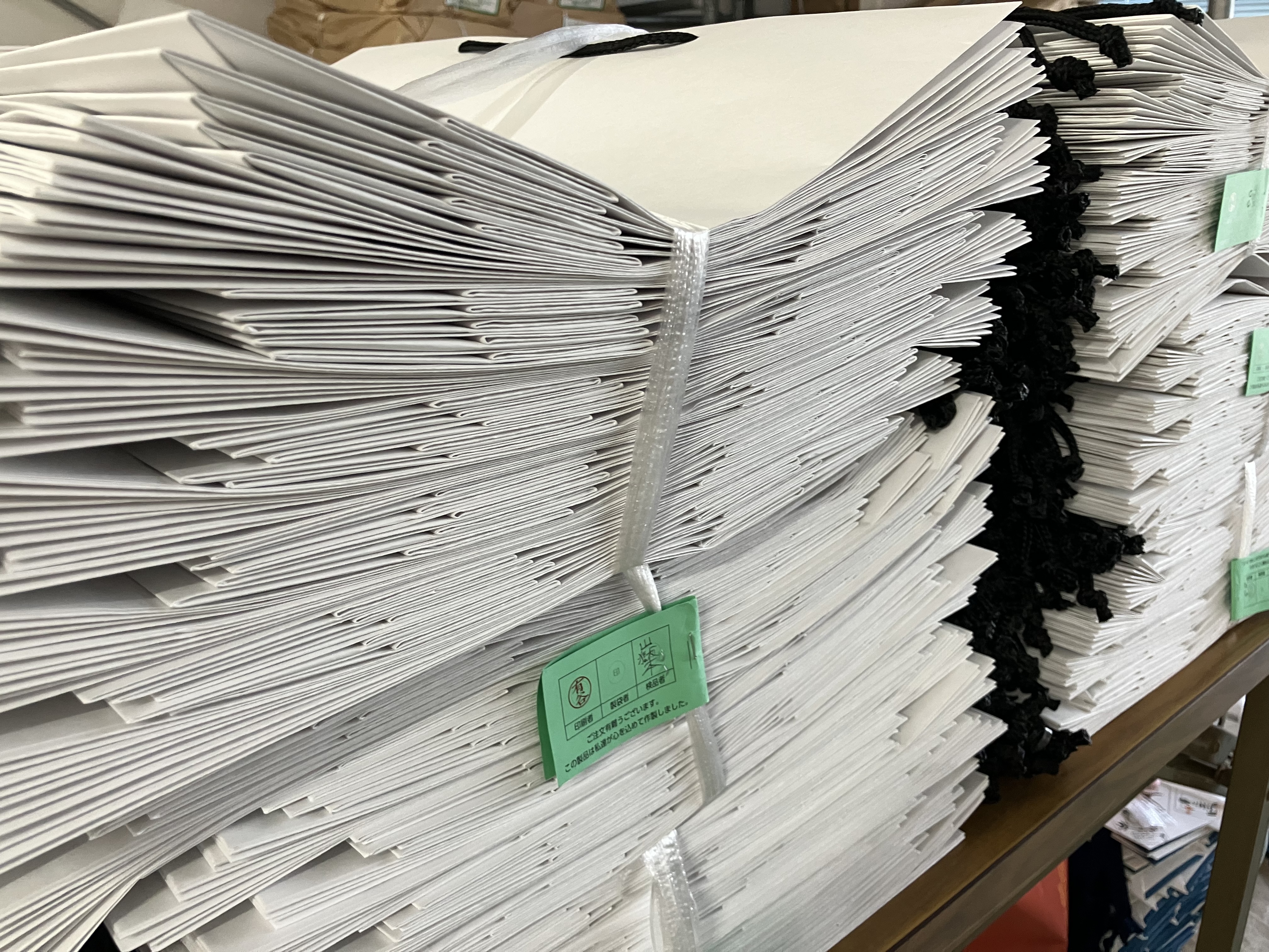 そんな暖冬が続く中、今日もいろいろな種類の手提げ袋を製袋中です!