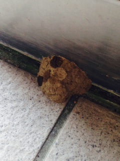 しかも、スズメ蜂っぽい?蜂さんが、何か作業的な事を、せっせとしております。 「シャチョーー!玄関に蜂の巣が!!」