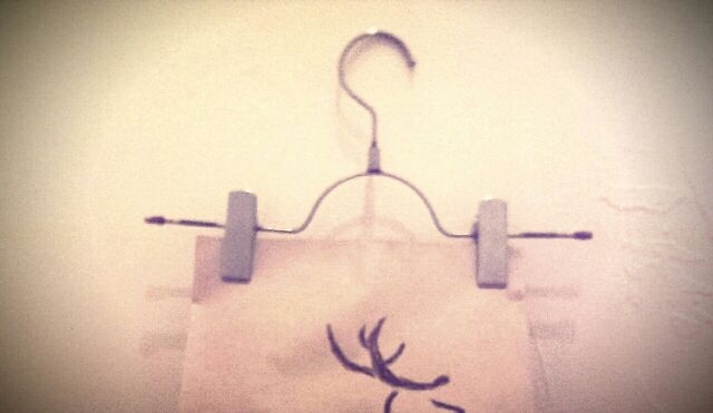 そして紐がないので、パンツ用ハンガーを持ち手代わりに…