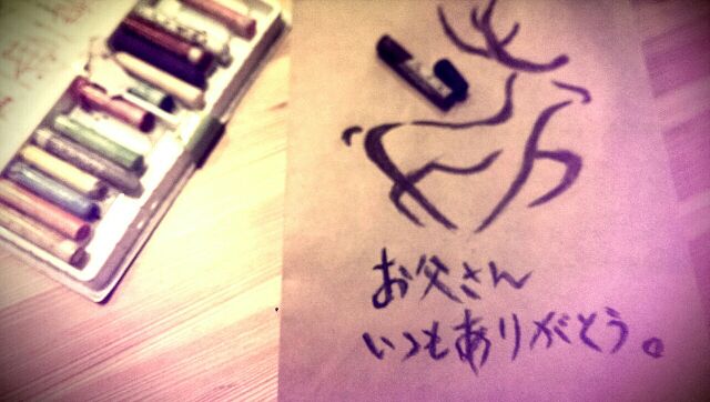メッセージだけだと地味なんで、父が好きな鹿のイラストを書き…