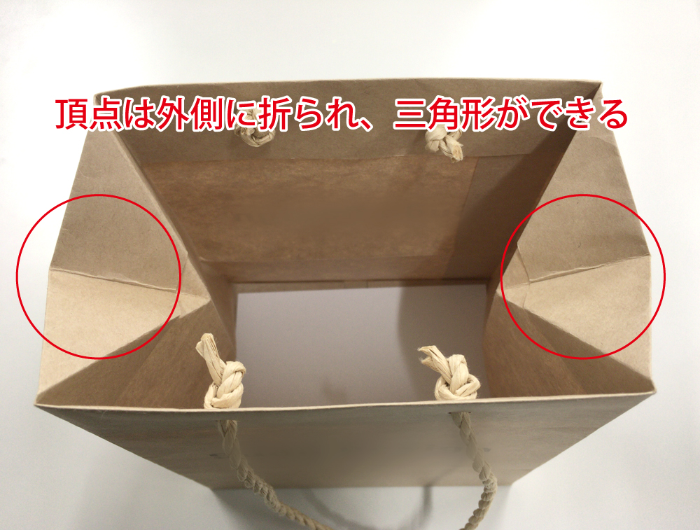 そうです。マチ(袋の側面部分)の折り方が頂点部分だけ、外を向いているのです。だから外折りと呼びます。