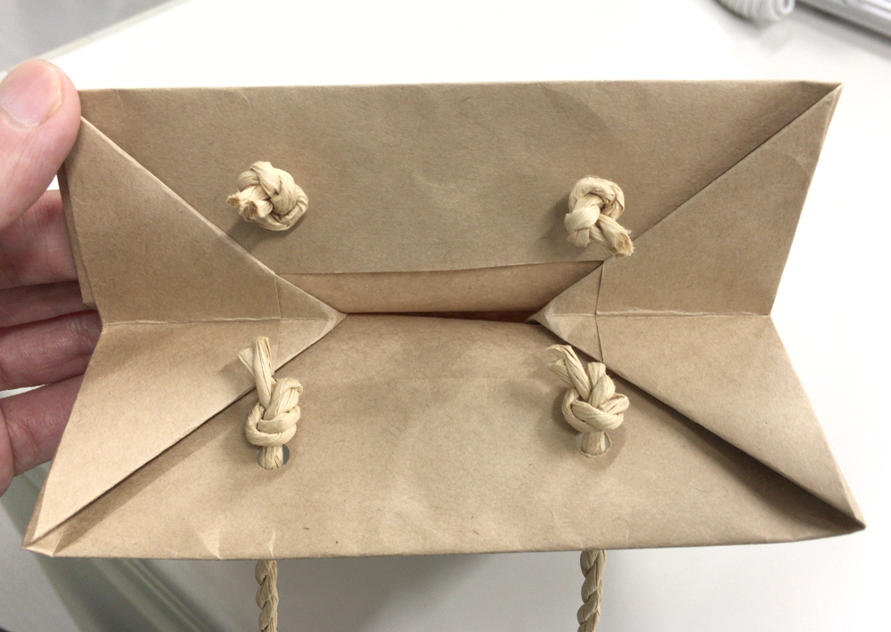 手提げ袋(紙袋)はその使用用途上、使わないときは折りたたんで保管するものです。使わないときに自立されてもスペースを消費しますからね。