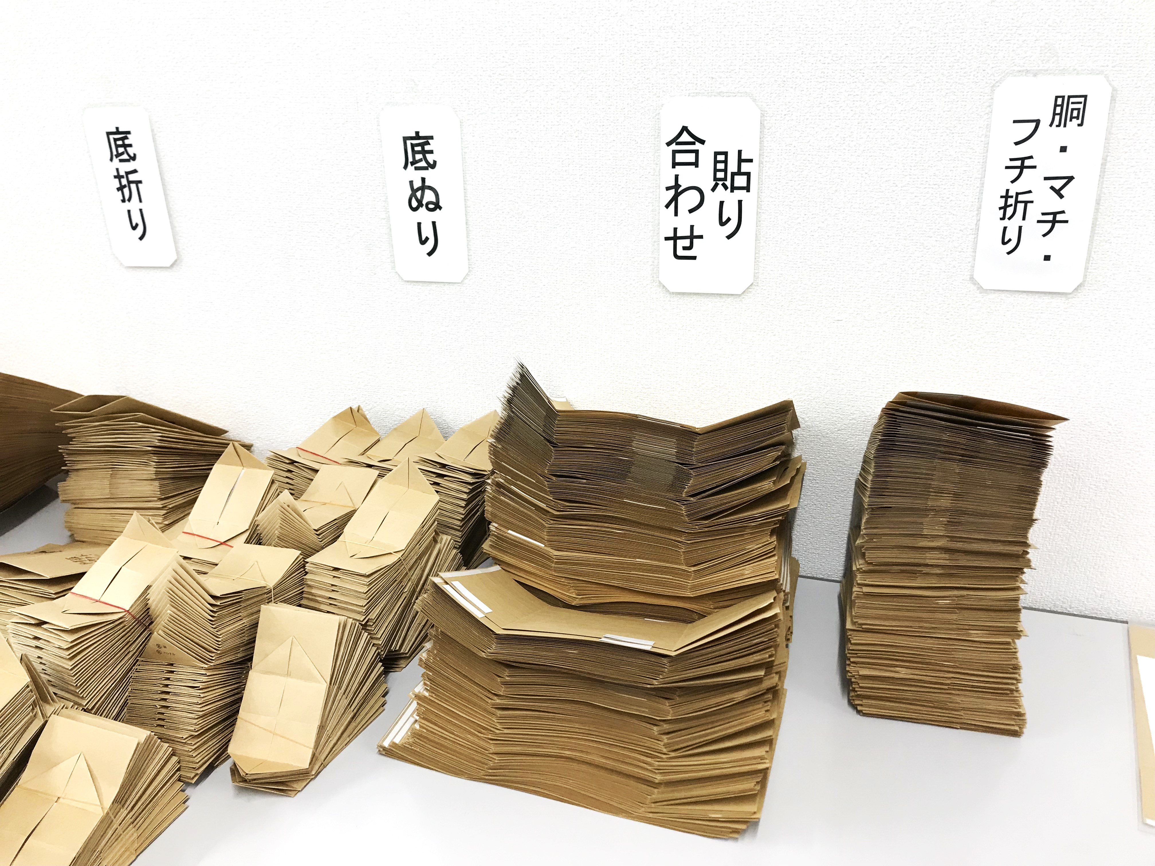 こちらの写真のように、工程ごどに置かれている状態の袋が並んでいますね。