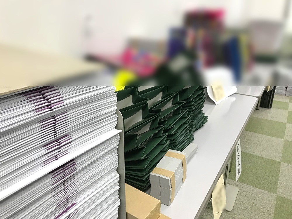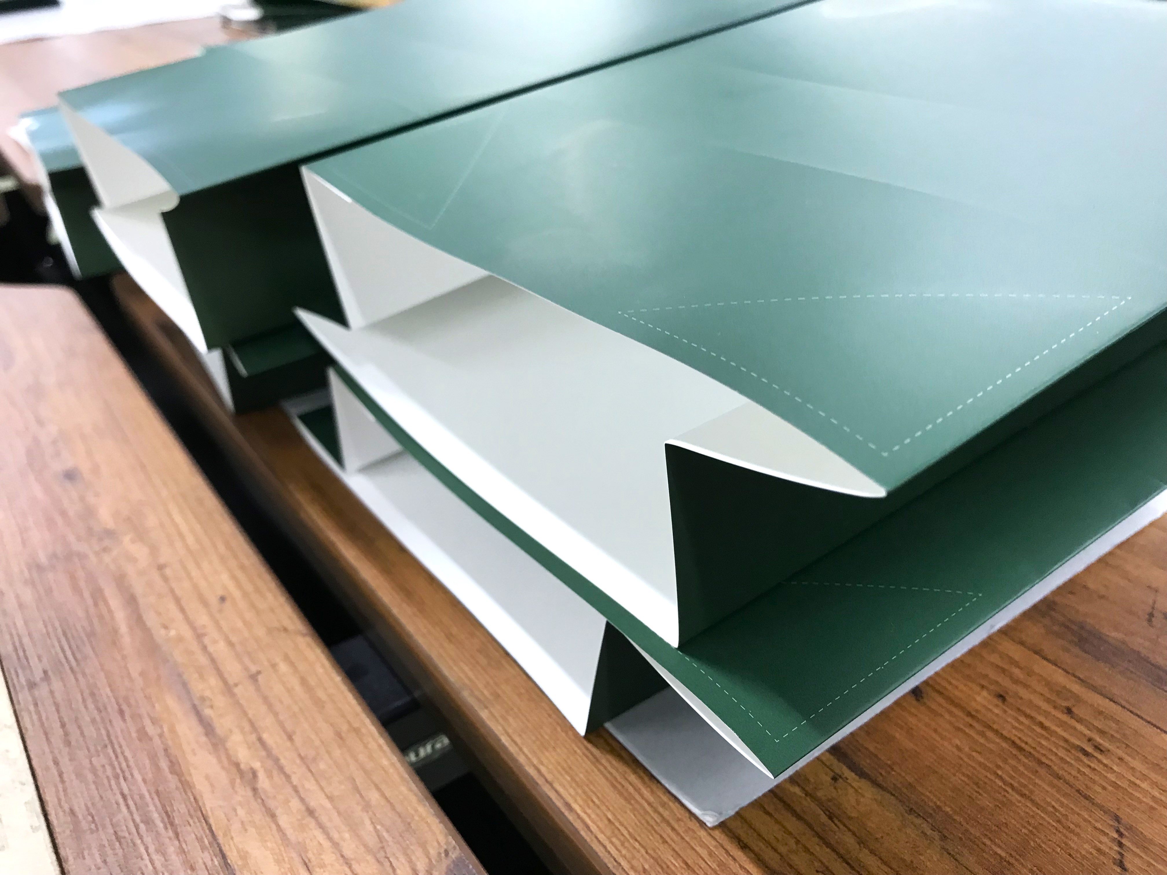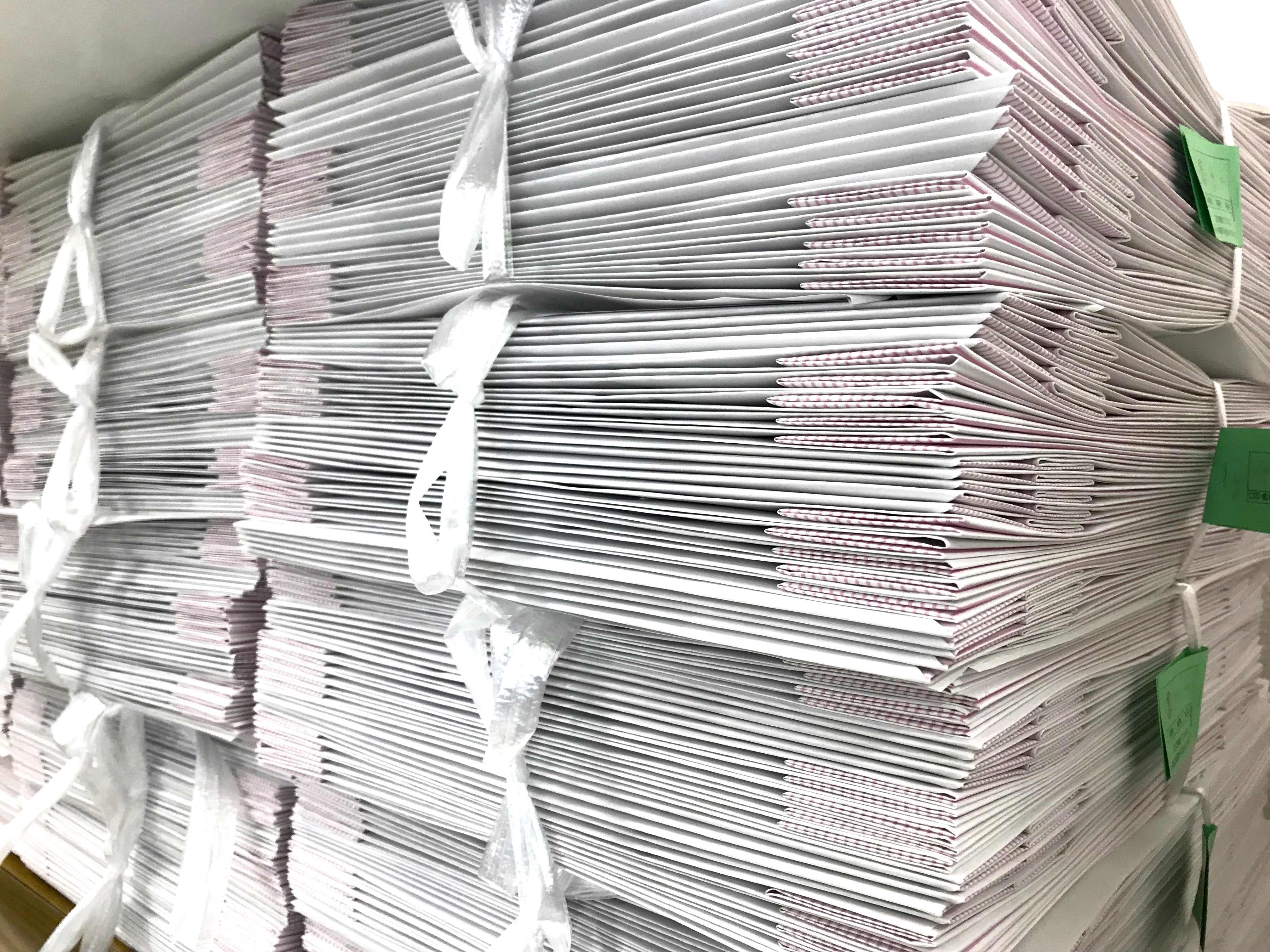 製袋作業場では今日も多種多様の手提げ袋が折られています。