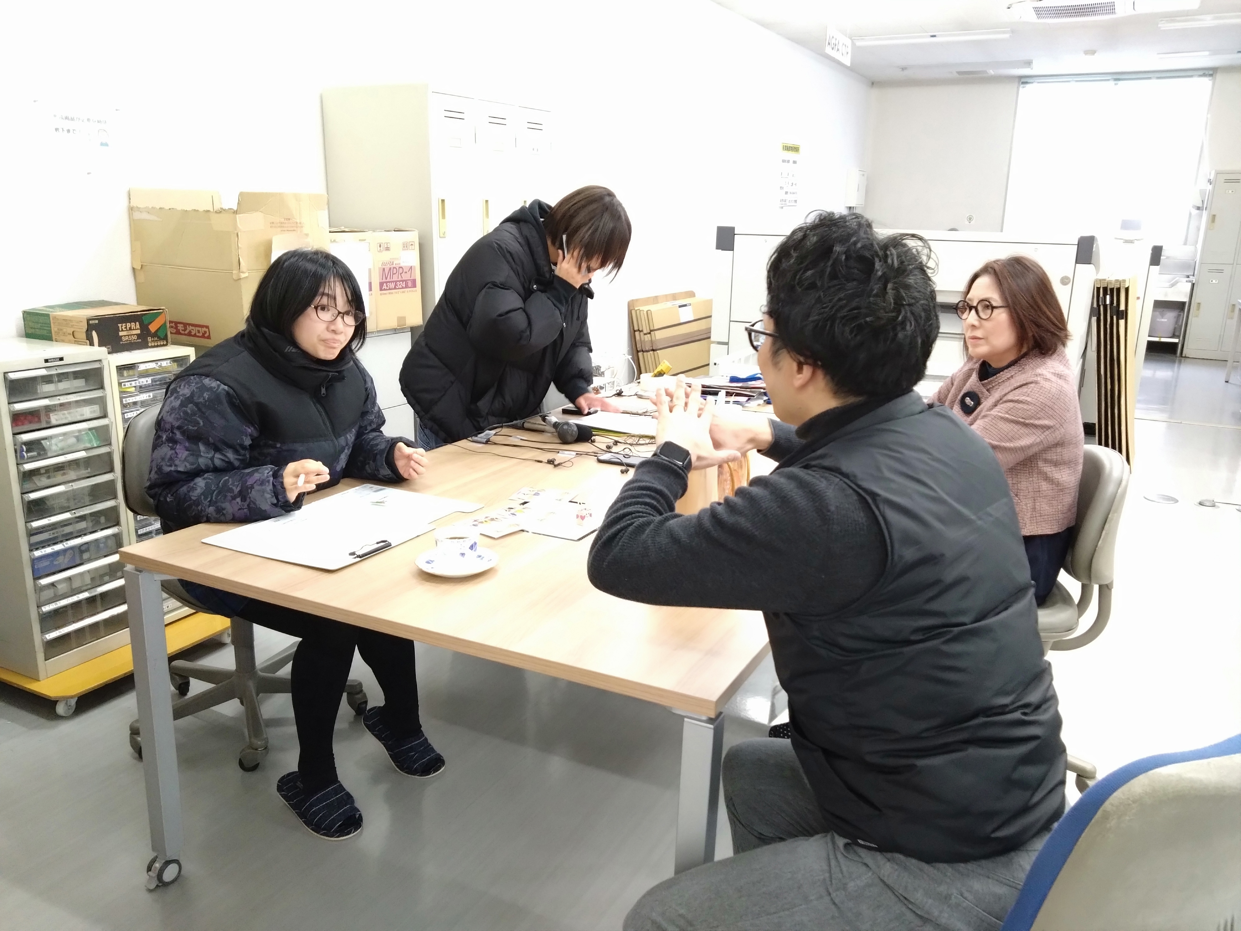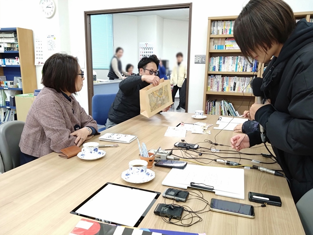 こんにちは!まっつんです 先日、熊本のローカルラジオ 『ラジてん』の取材を受けました。 スタジオにいるMCさんとくま袋事務所をつないだ生中継です。 今回お作りした『ミュシャ展』の手提げ袋をご紹介しています✨ 奥ではスタッフが優しく見守っていますね( ´艸`)www とても楽しい雰囲気の中、くま袋の良さがお伝えできたのではないかと思います。 取材に来ていただいたミミーキャスタ―さんやスタッフの方々 ありがとうございました!!