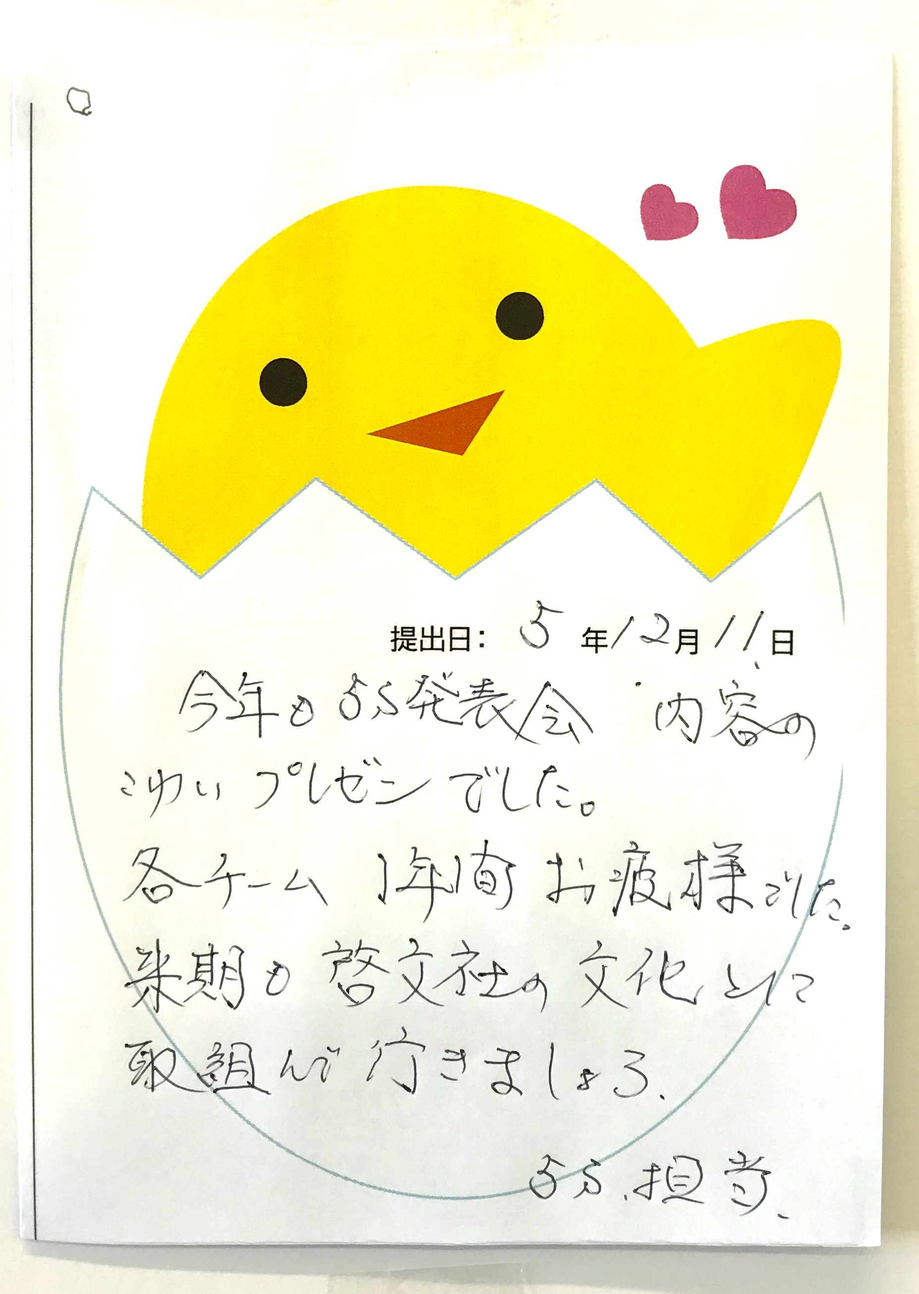 というわけで、社員から集めた12月の声の中からいくつかピックアップしてご紹介します!