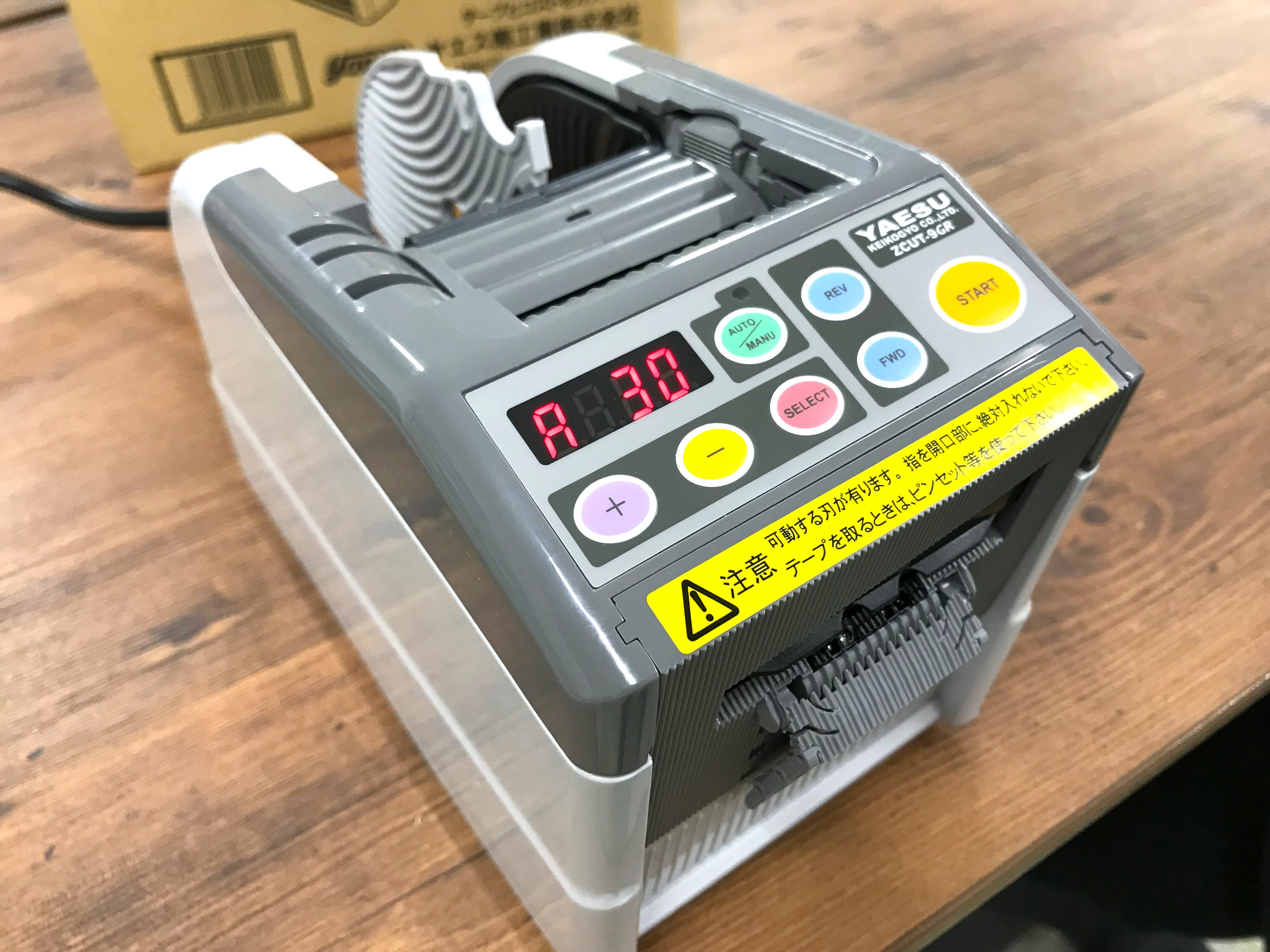 こちらの機械は袋を作る際には欠かせない両面テープを設定した長さで効率的にカットしてくれる優れものです。