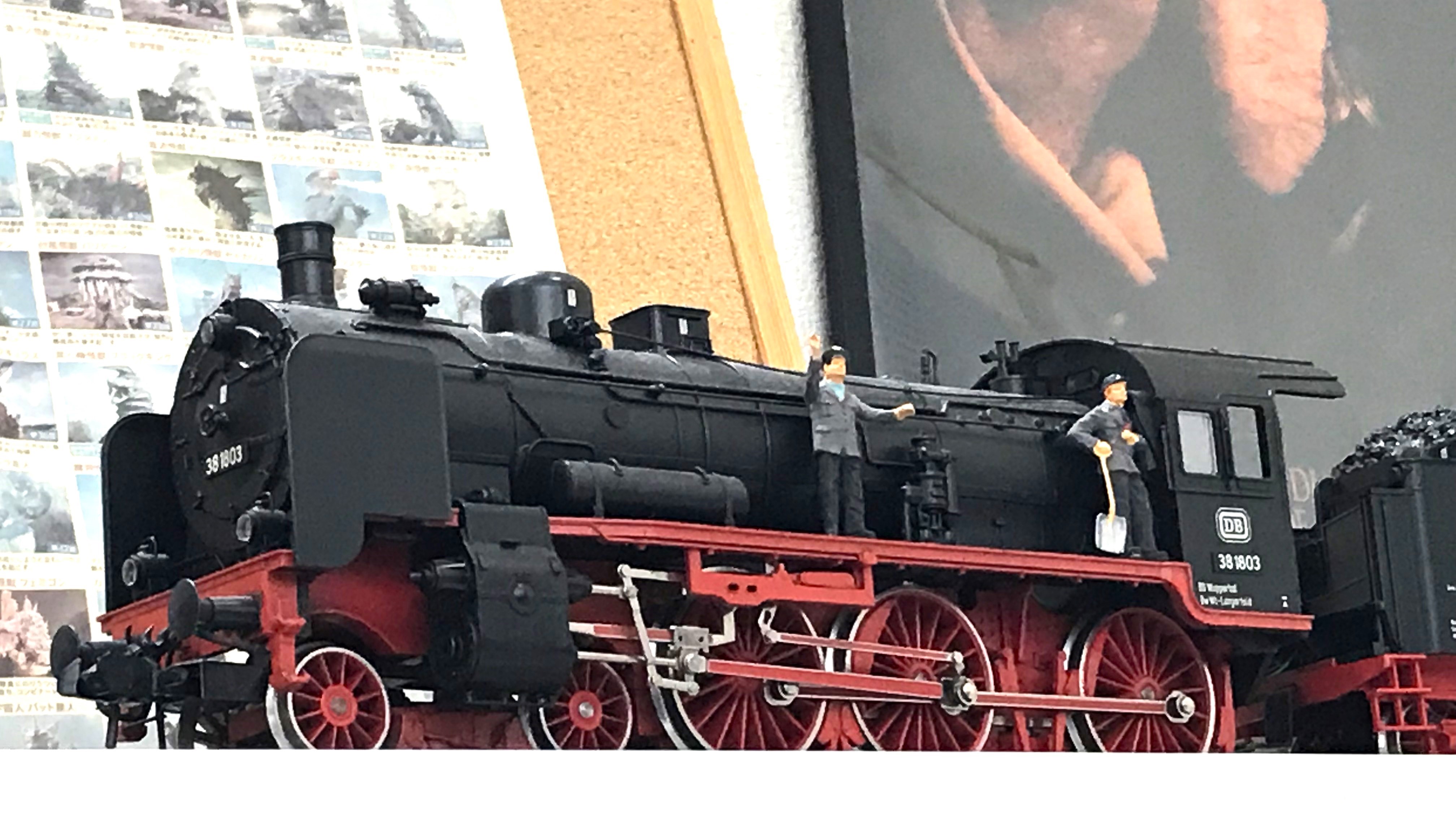会社の階段脇にズラリと並ぶ会長のコレクションの中に、ひときわ目を引くこの蒸気機関車は150年以上の歴史を持つ、ドイツの老舗玩具メーカー「メルクリン社」の鉄道模型です。