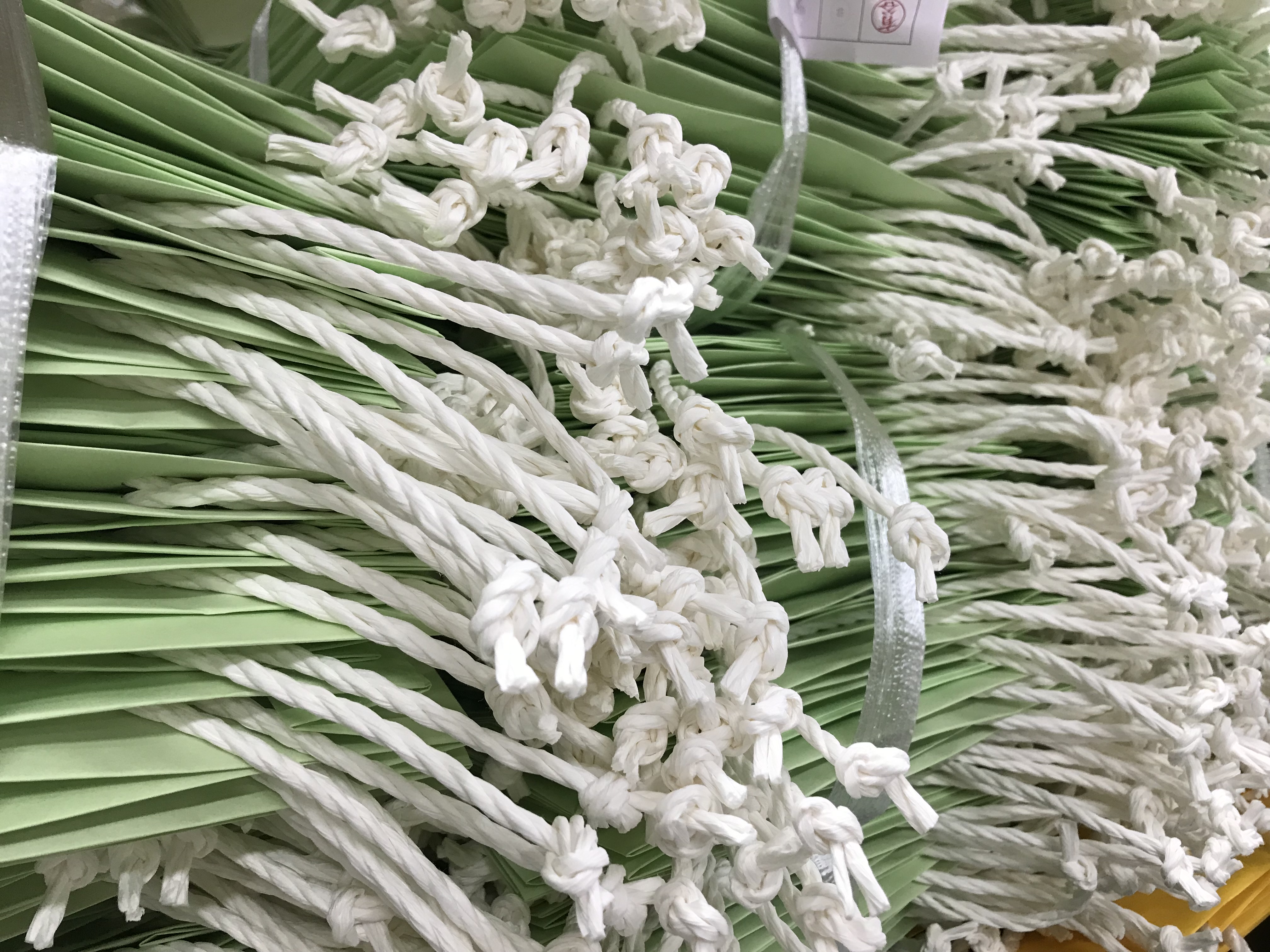 紙はうぐいす色のクラフト紙でお作りしています。お札や熊手、破魔弓などを入れるからでしょうか、神社様で使用される手提袋の形は一般的に縦長タイプが多いようです。