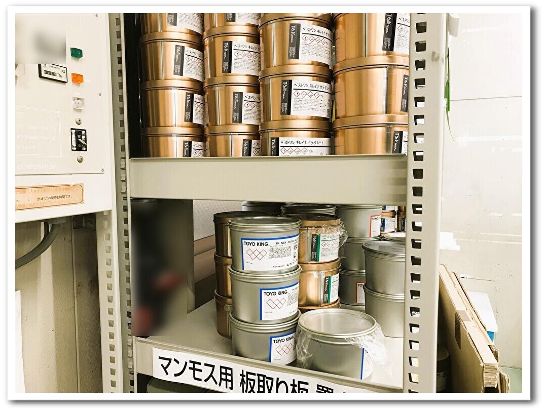増築工事で新しく誕生した工場入り口の搬入スペースはこの通りたくさんの製品や材料で埋め尽くされています。