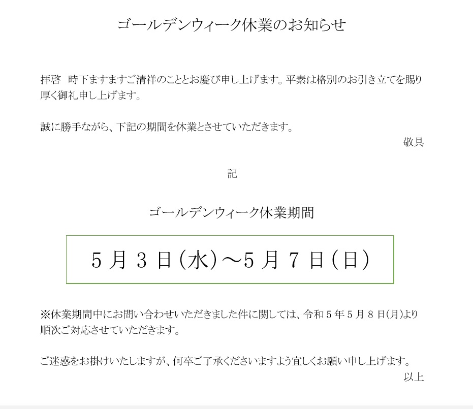 すべての商品につきまして、安定した品質の担保、資材調達にかかる日程を考慮しまして、原則として、ご注文から2週間以内のお届けは原則としてお受けしておりませんのでご了承くださいませ。