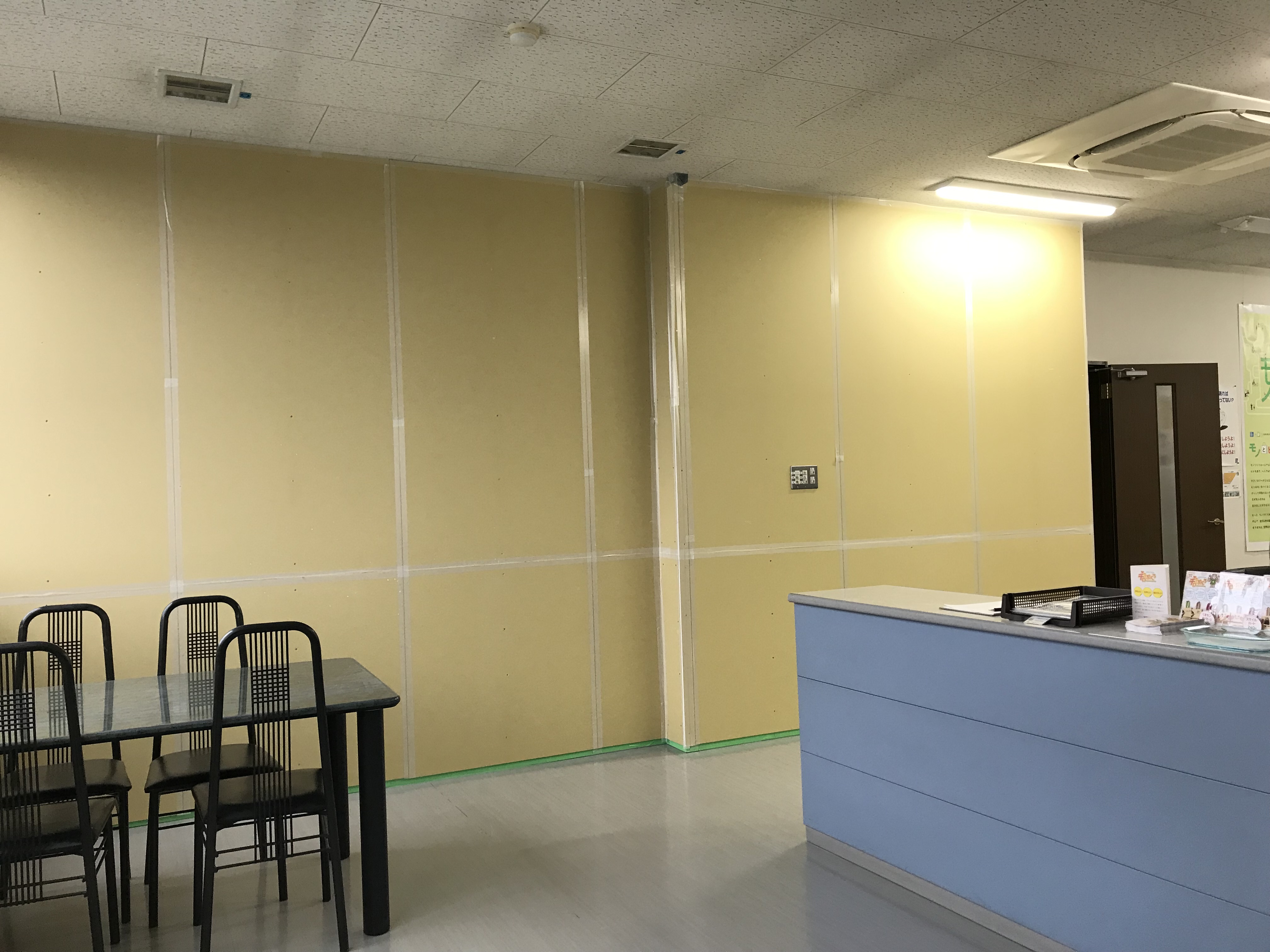 2階フロアの一部も工事面にかかるため、黄色の仮壁が出現。
