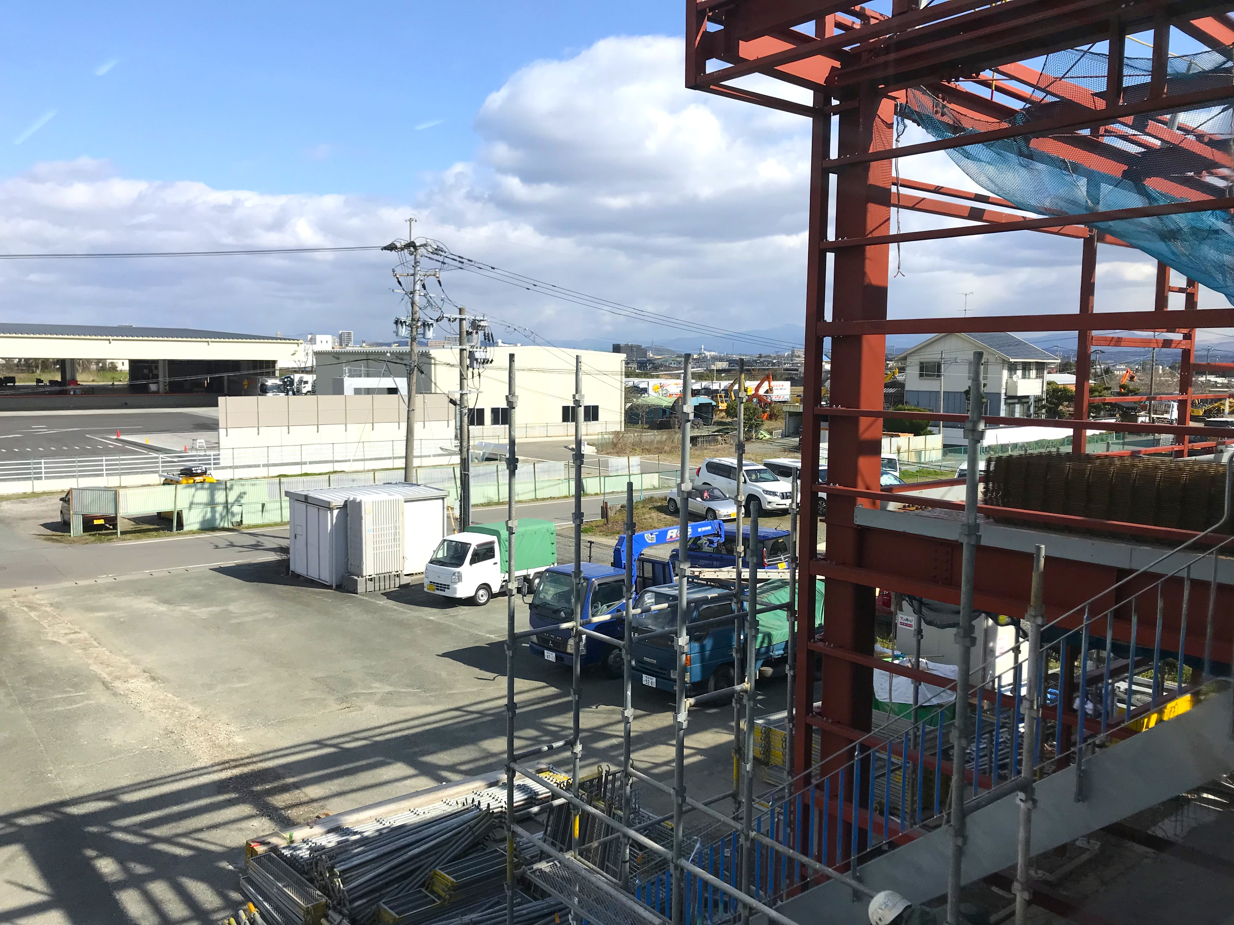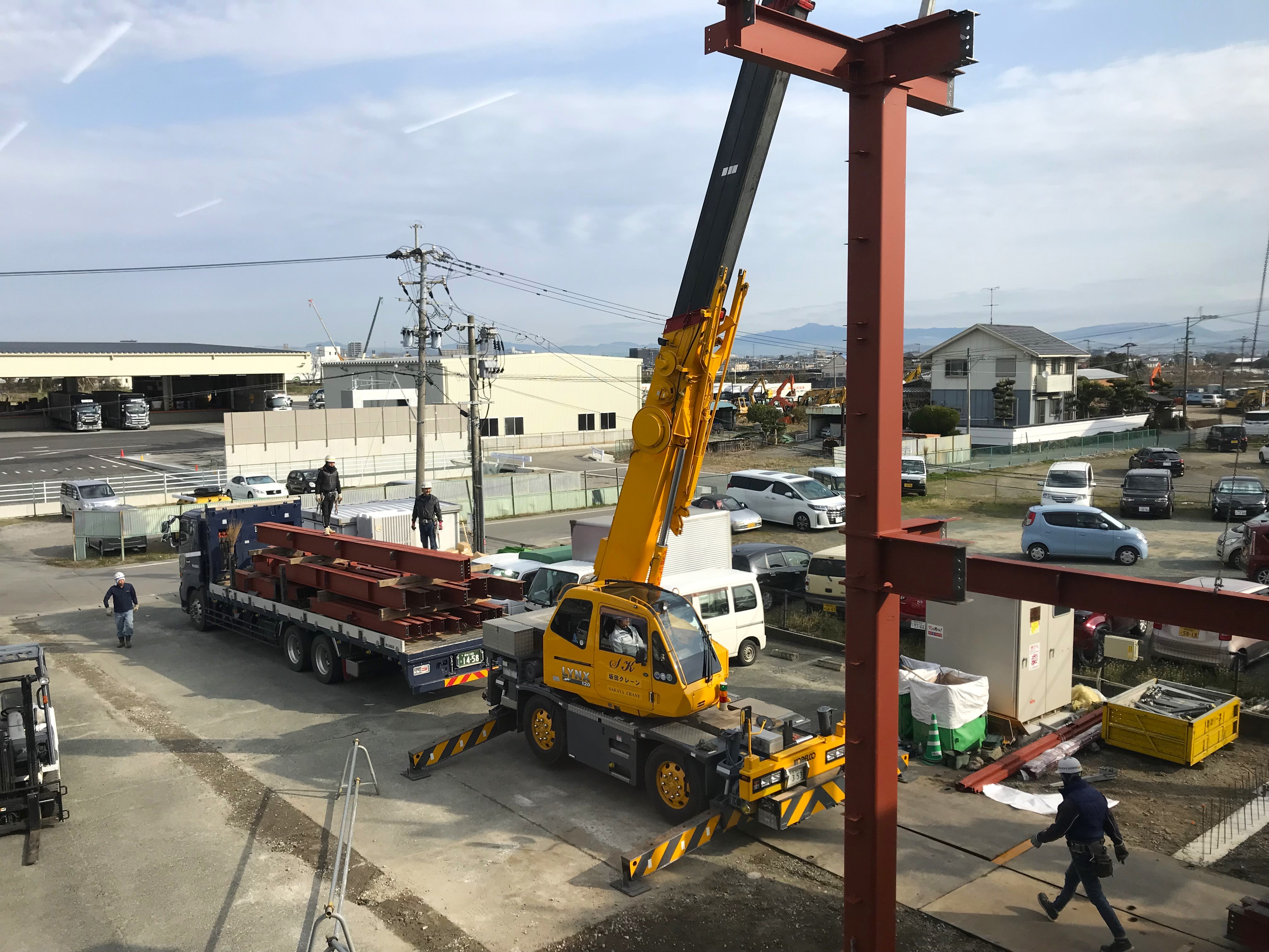 20日㈪、出勤するとすでに鉄骨が組みあがり、側面には階段まで付けられていました!