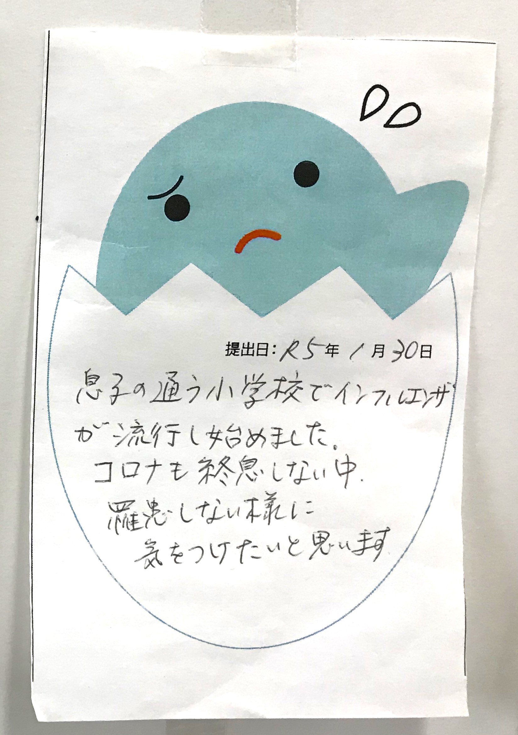 このたまちゃん、匿名で投稿してもいいのですが筆跡でだいたい誰が書いたか分かっちゃうという…。