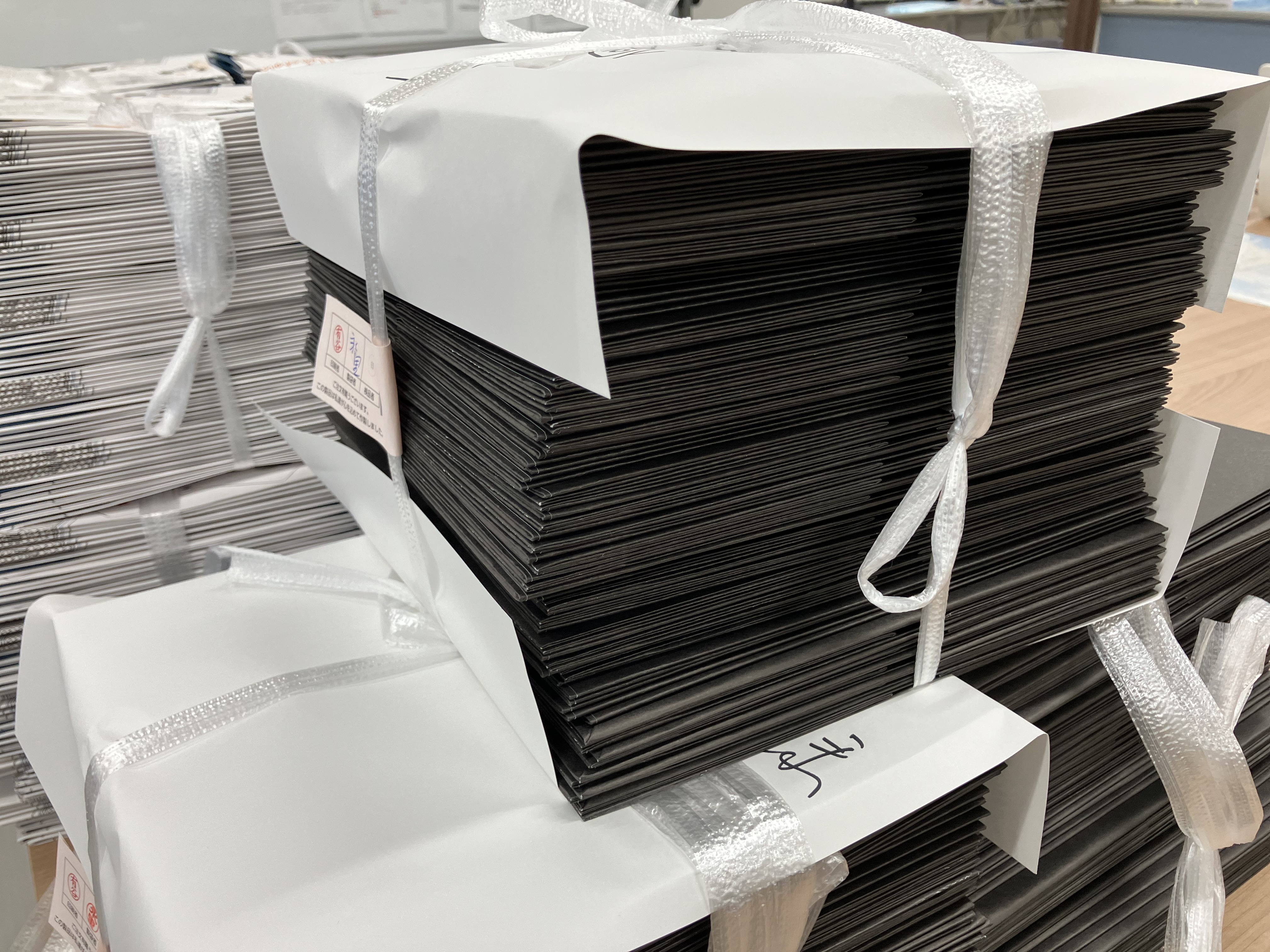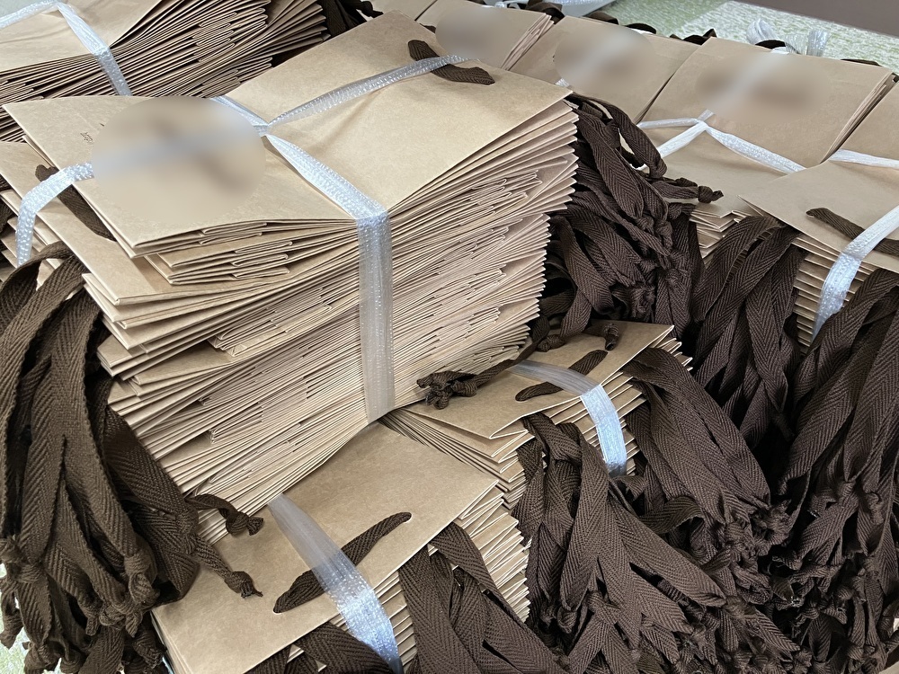 こんにちは!まっつんです 朝晩まだ肌寒さがのこるこの季節ですが今日から3日間ほど全国的に暑い5月になりそうですね。 九州は週末から天気が下り坂☔ 紙は湿度管理がとても重要です。 湿度の変化によって伸び縮みし、品質や耐久性に影響を受けます。湿度が高すぎると紙が波打ったり、乾燥するとパリパリになります💦 湿度管理には、除湿機や加湿器を使ったり、保管場所を風通しのよい場所にしたりと常にベストな状態を保てるよう品質管理に努めます! 今日も作業場にはたくさんの手提げ袋がならんでいますよ♪