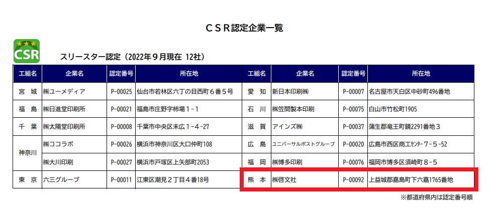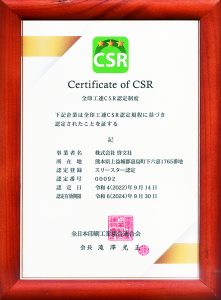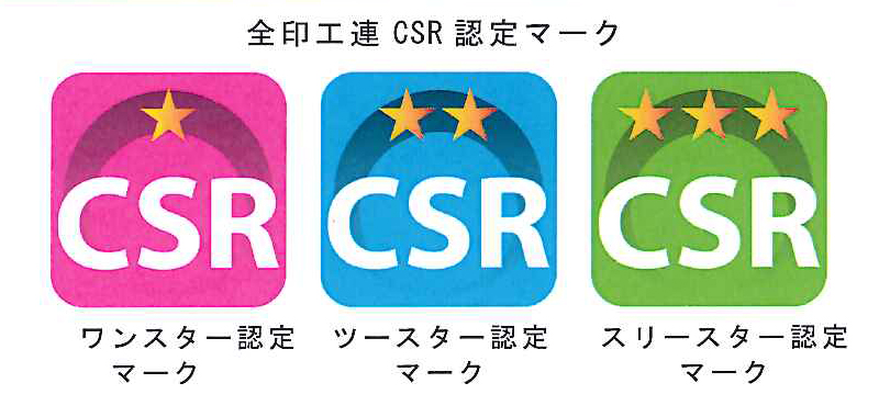 CSR認定制度とは、中小印刷業が取り組むCSR(企業の社会的責任)への取り組みを「コンプライアンス」「環境」「情報セキュリティ」「品質」「雇用・労働安全」「財務・業績」「社会貢献・地域指向」「情報開示・コミュニケーション」という8つの分野に絞り、策定されたチェックリストに基づいてその達成度を認定されたものです。
