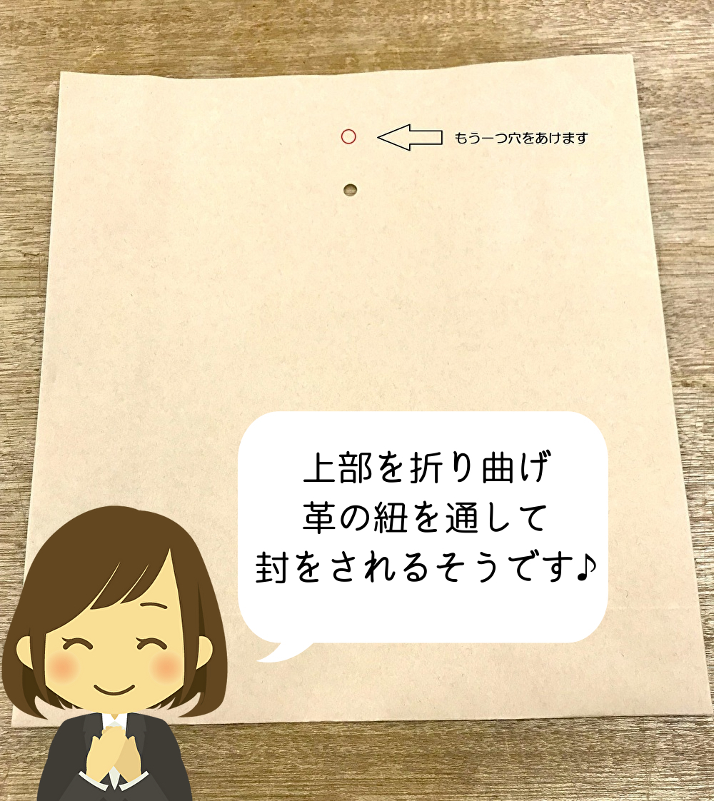 ☝こちらは東京にあります革製品や小物を加工販売されているショップ様のオリジナル角底袋です(^^♪ 深緑でお店のロゴを印刷しています。このあと上部に2つ縦に穴をあけて完成となります!へ?穴が縦に2つ⁉どういうこと??とお思いの方。説明しますと、お客様のお取り扱い製品である革製品を紐状に加工したものをこちらの袋の穴2つに通して封をされるとのことです!!