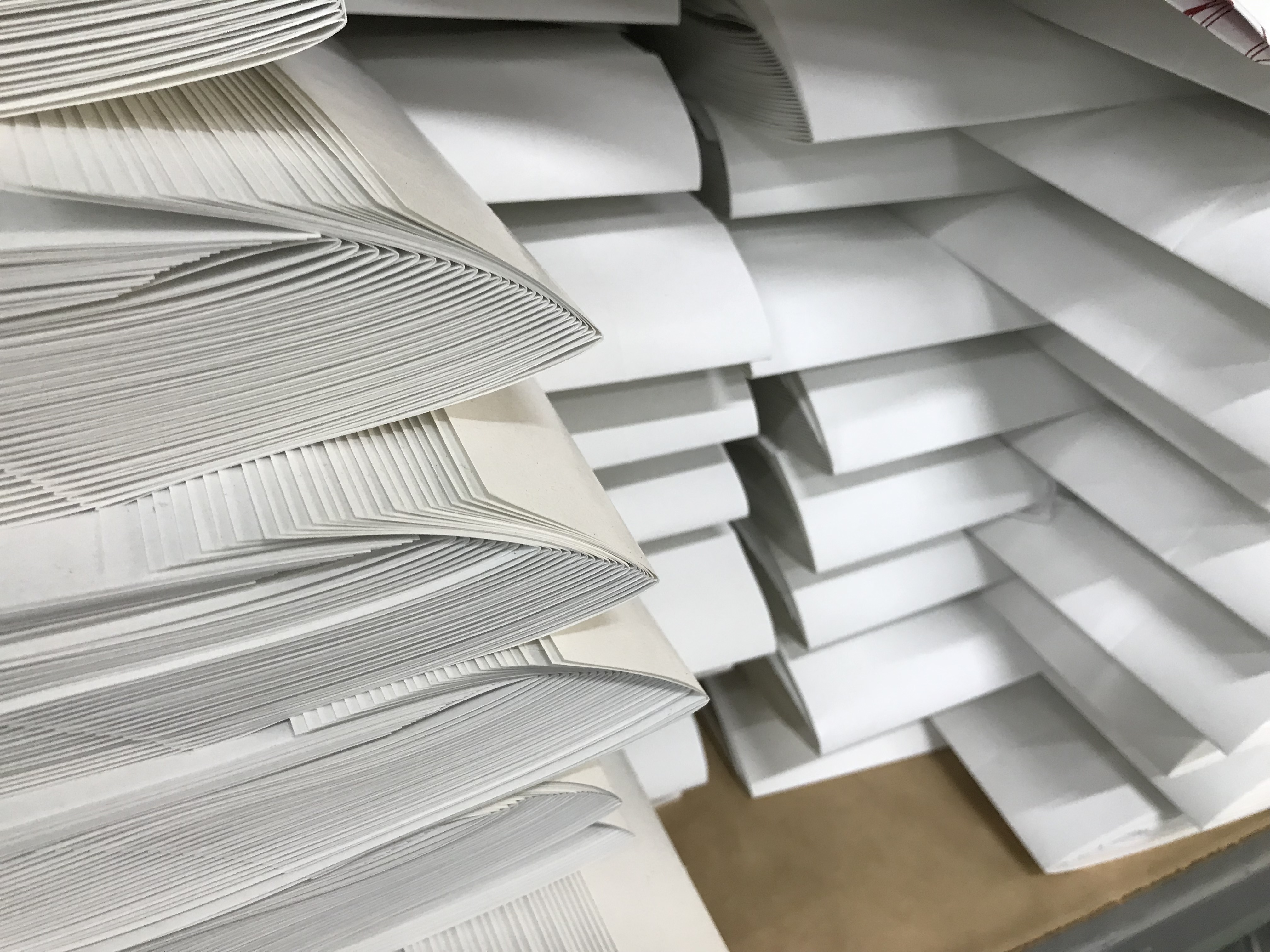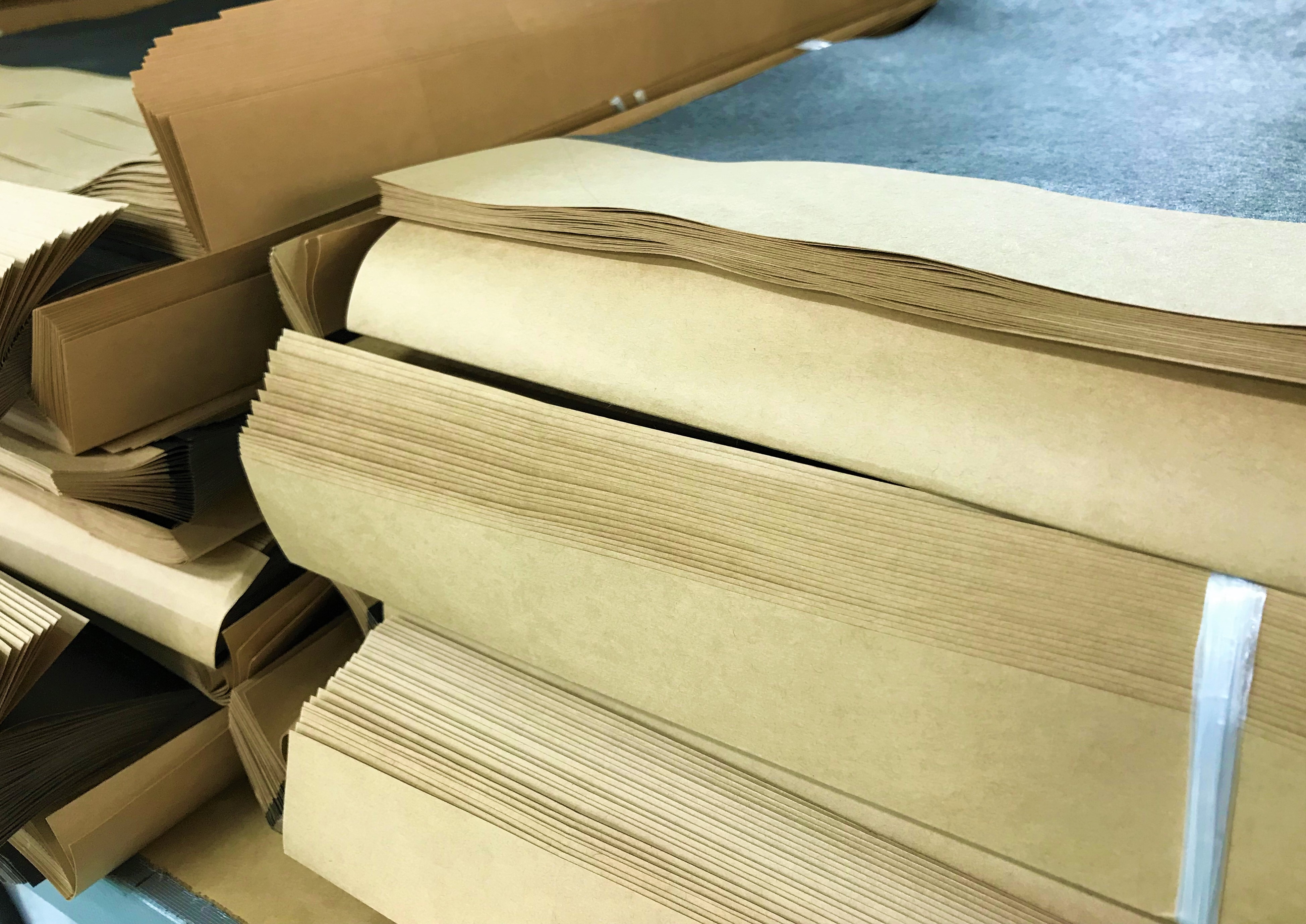 地元のイタリアンセレクトショップ様です。長年ご利用ありがとうございます。未晒クラフトに全面ベタ塗り。ベンチタイムを経て機械で折り目を入れた状態です。