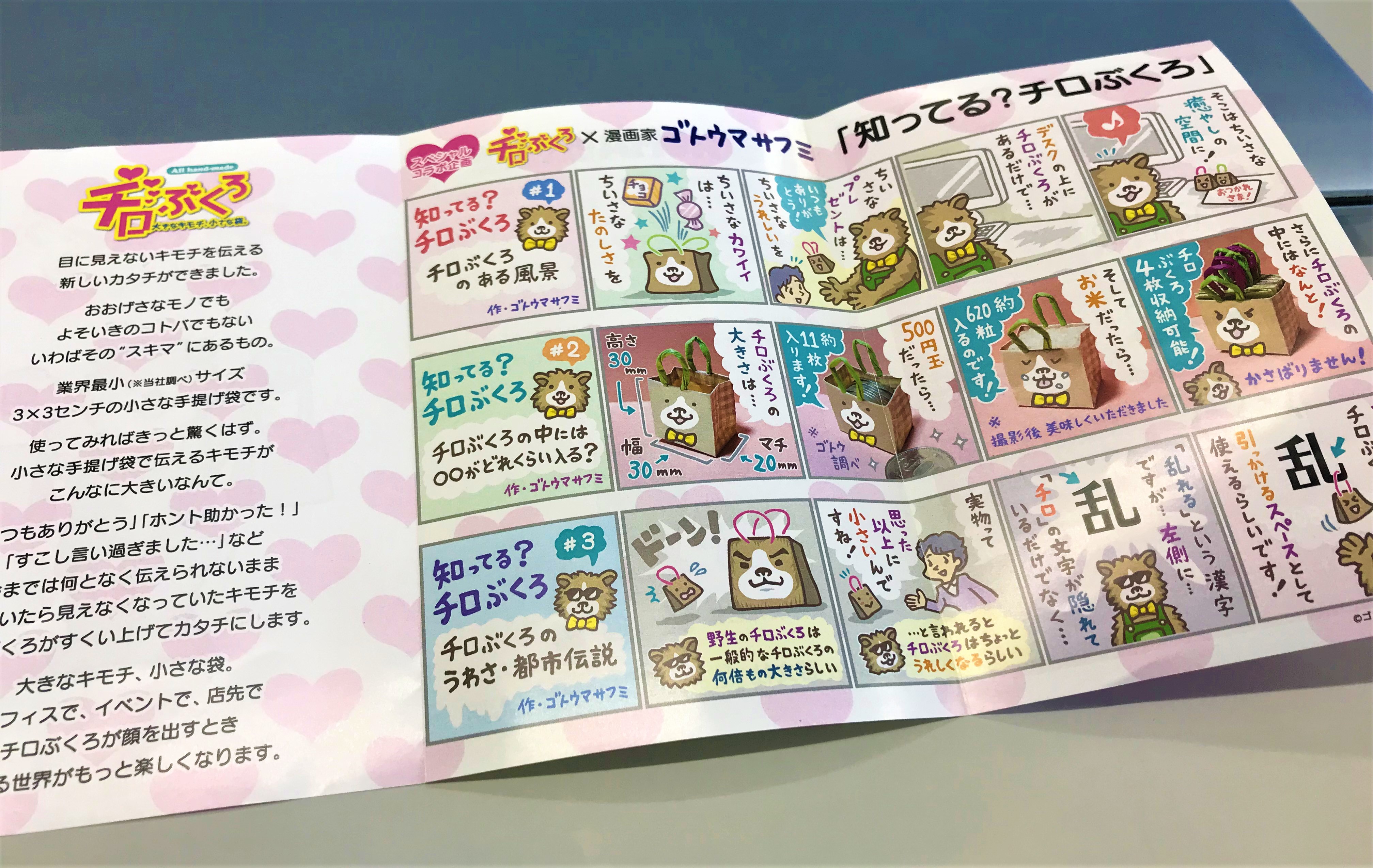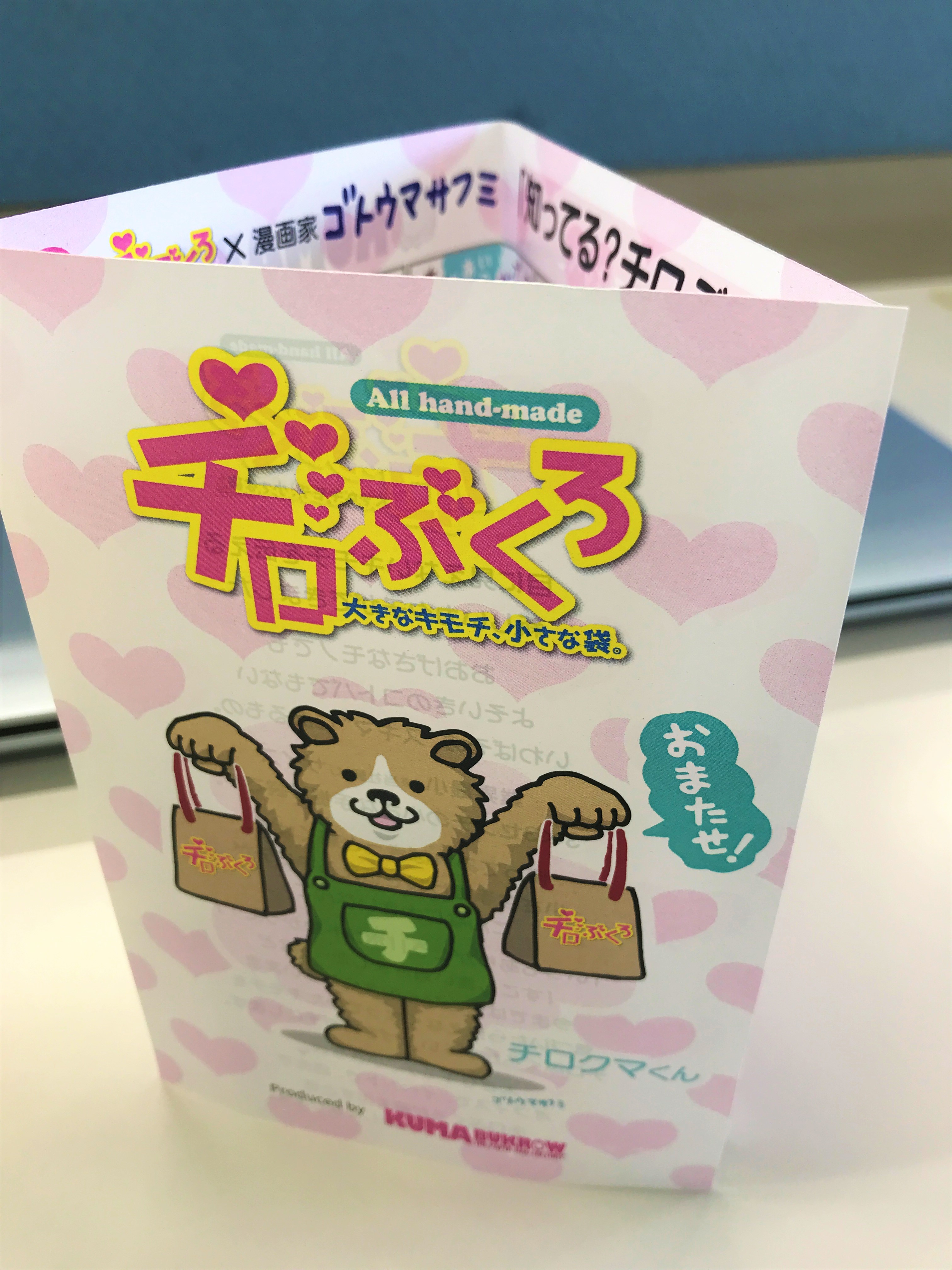 こんにちは!まっつんです 現在、㈱啓文社では事務所2F受付にて 小さなかわいい紙袋『チロ袋』を販売中です🛍 3セット 240円(税込み) チロ袋のことが分かりやすい漫画で解説してあるパンフレットもご準備していますのでご興味のある方は是非とも手に取られてください💕 熊本出身のイラストレーター「ゴトウマサフミ」氏による漫画は一見の価値ありですよ!!!