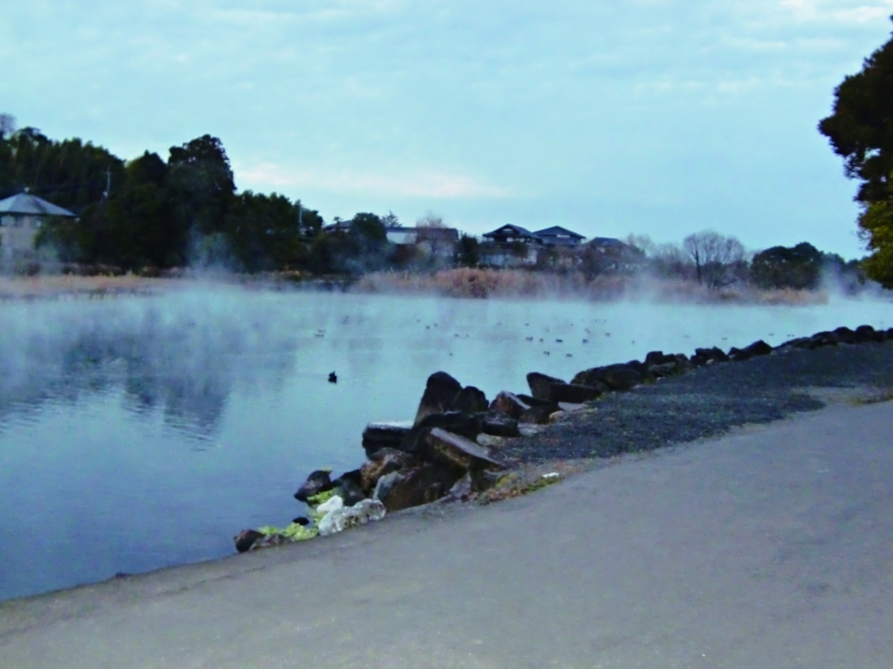 「蒸気霧(じょうきぎり)」が立ちのぼります。