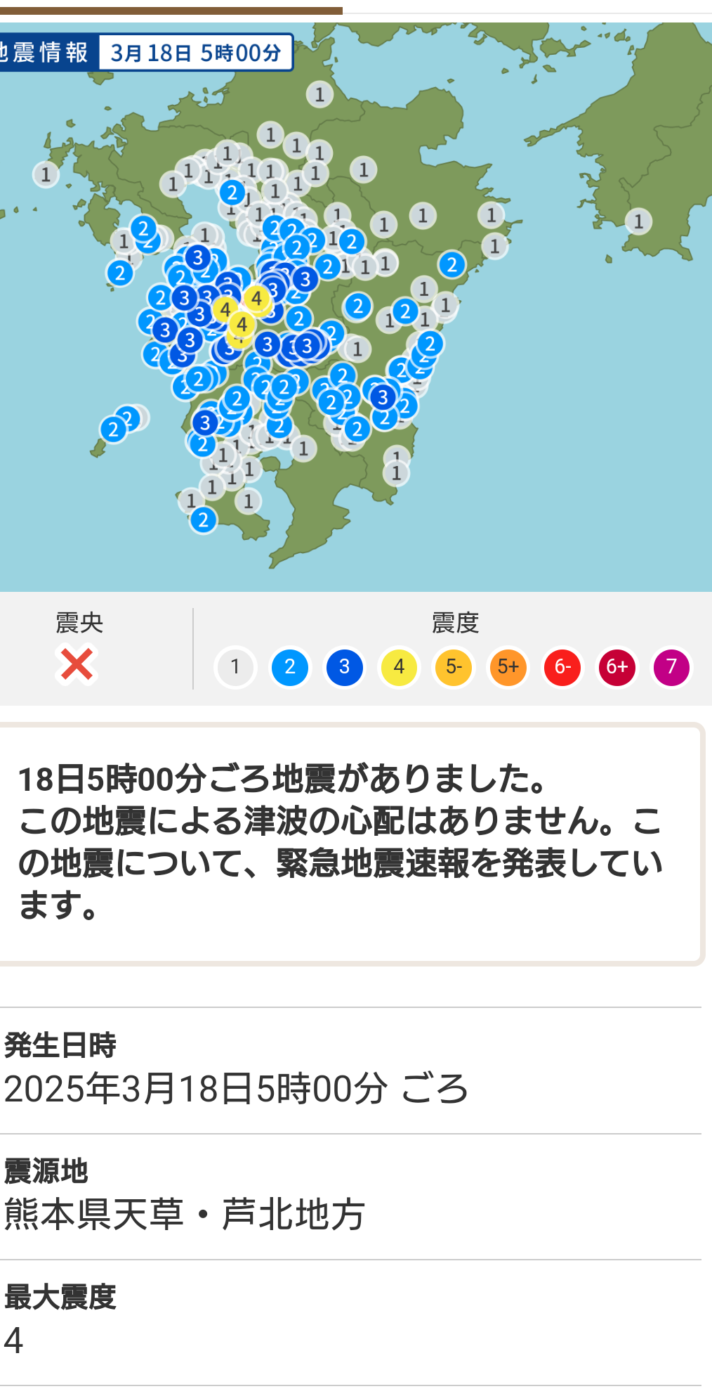 かつての熊本地震で震度7やその後のすさまじい数の余震を経験していますが、いつまでたっても地震アラームには心臓バクバクです。