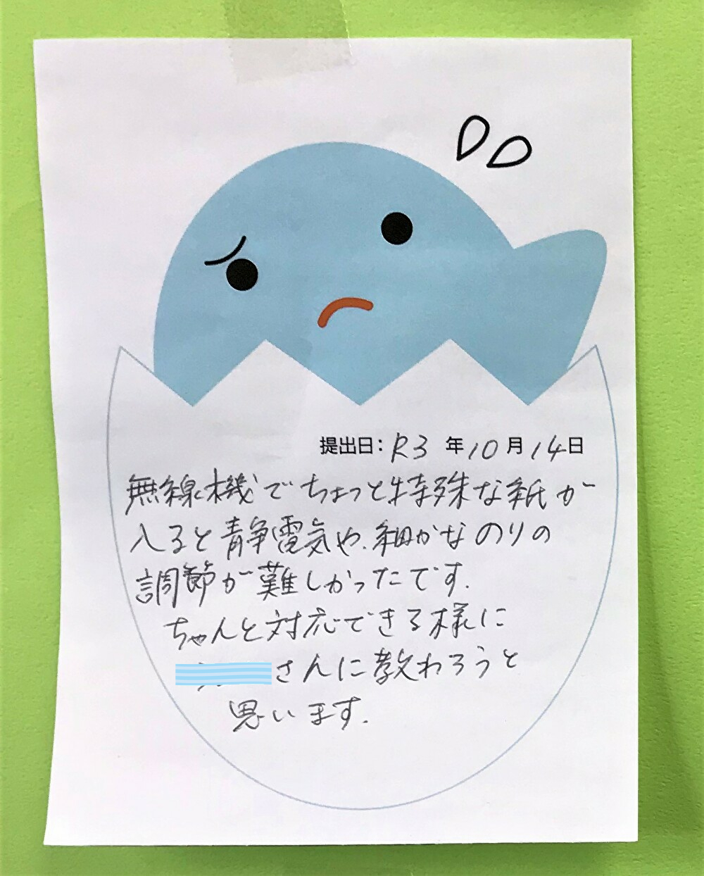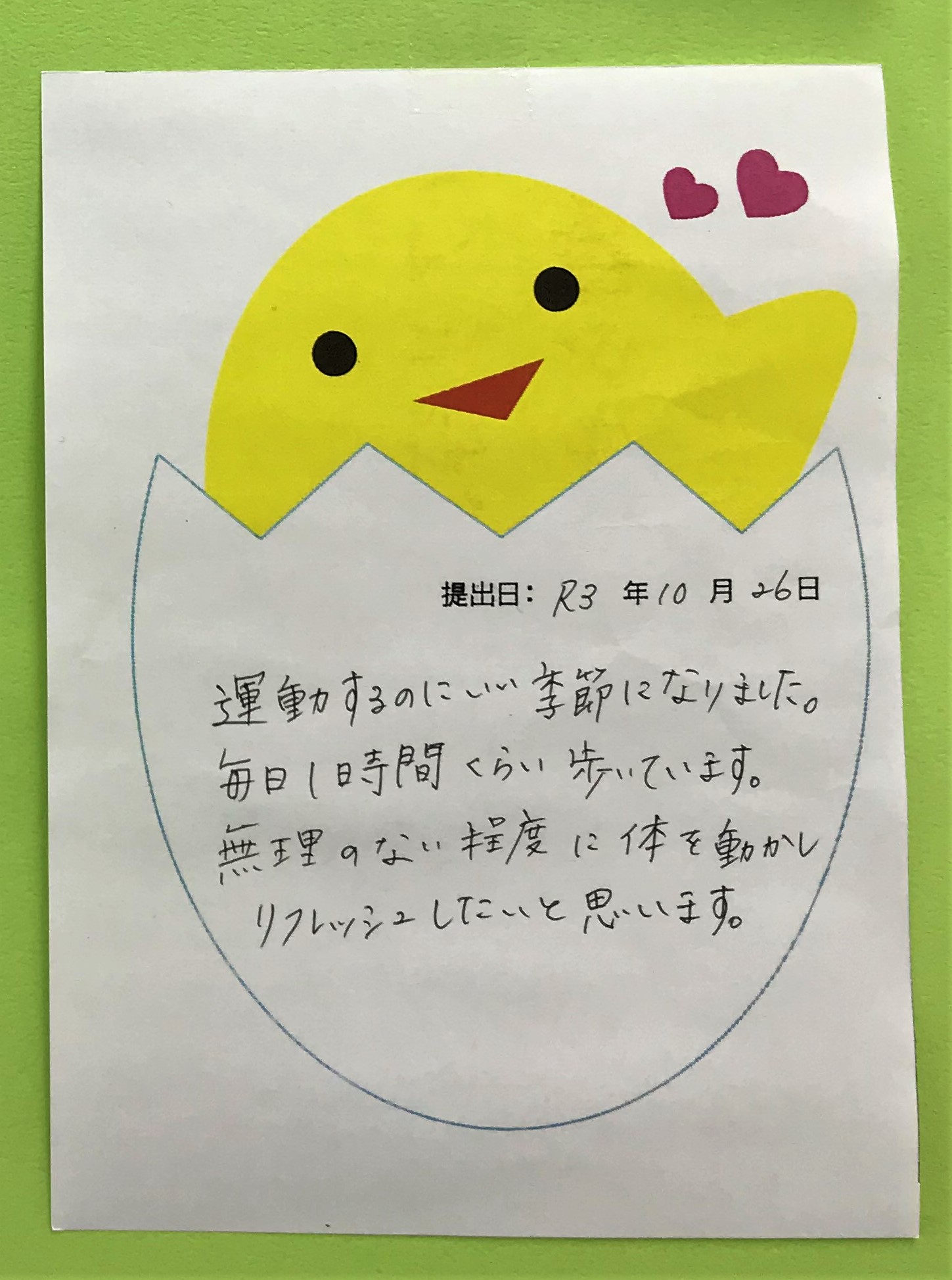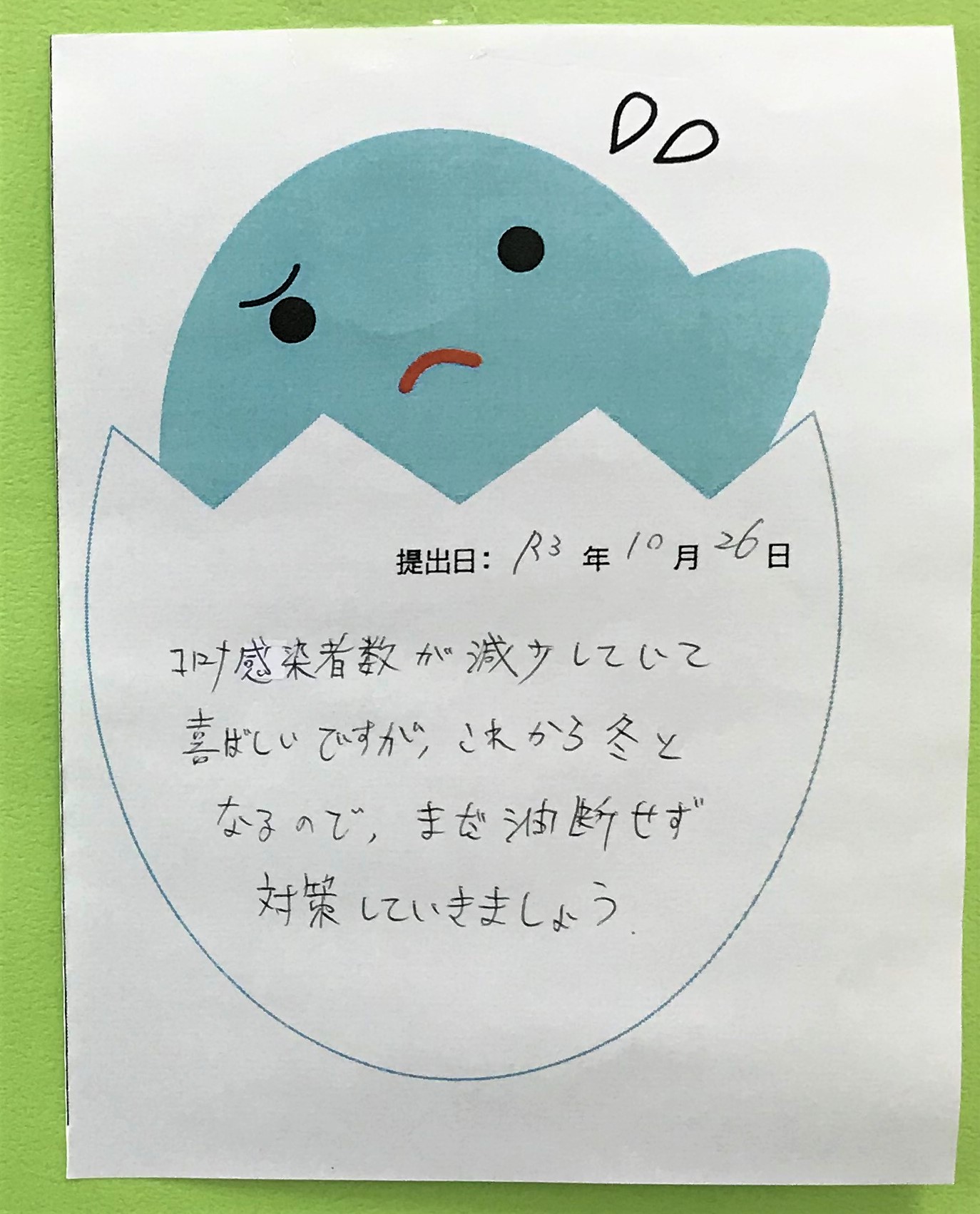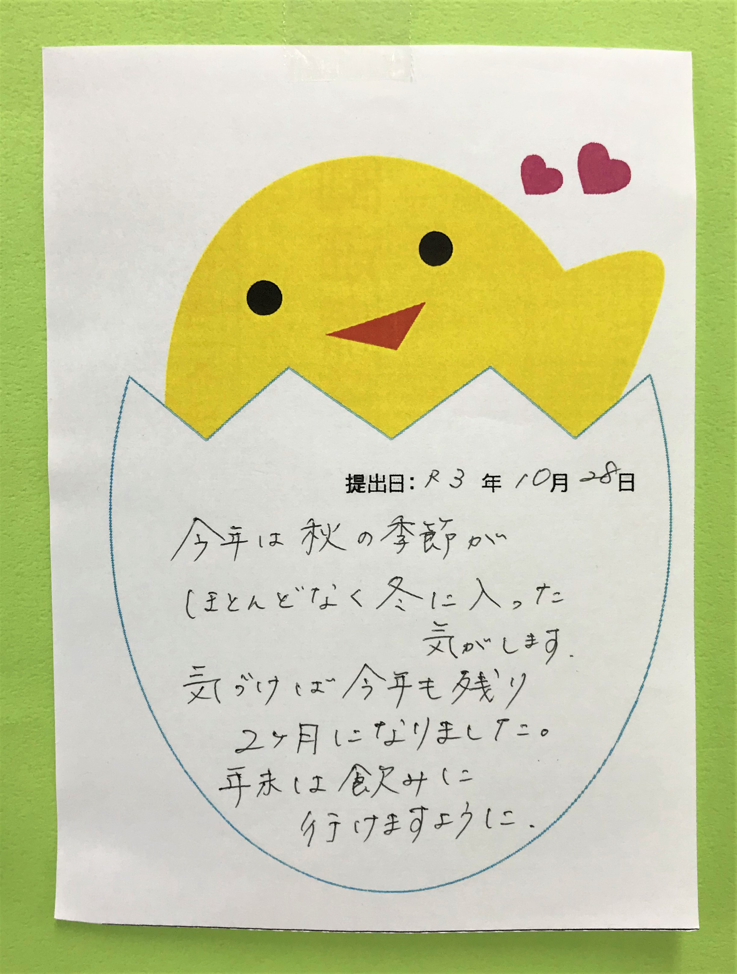 こんにちは!まっつんです 一日の寒暖差で体調を崩す方増えてますね。 寒い!と感じたらガンマンせずに1枚、衣類を重ねましょう。 その暖房は本当に必要ですか? 重ね着することで体は結構温まります💛 重ね着は🥰ECO🥰 話題は変わって先月にスタッフから集めたご意見 通称「たまちゃん」の一部をご紹介します。 今月もたくさん集まりました! 互いに理解し合い、問題点・伸ばす点を把握し快適な会社を みんなで作っていきましょう!