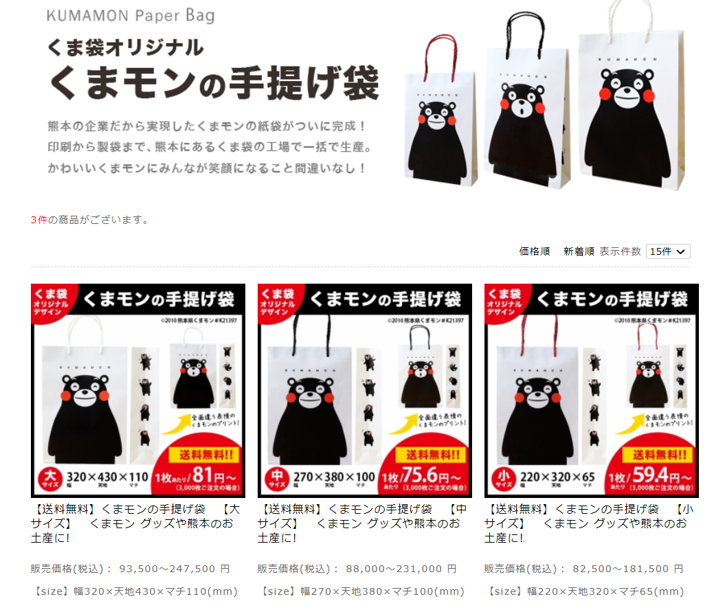 くま袋オリジナル くまモンの手提げ袋 ご紹介ページ