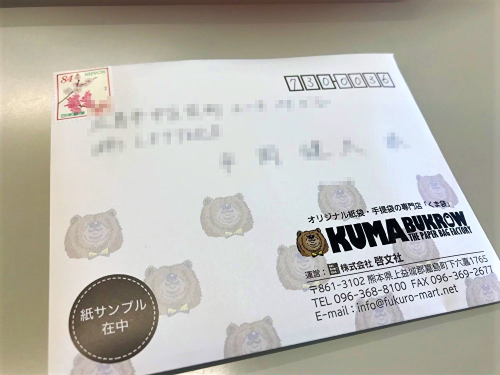こんにちは!まっつんです くま袋で使用しているオリジナル封筒が リニューアルされました! こちらがその新たな封筒での 無料紙サンプル見本帳 発送✉ 第1号なり💛💛💛 広島県のお客様でした 🙂 ホームページより無料会員登録された方に 順次発送させていただいています! お求めの方はこちらから↓↓ 紙見本サンプルプレゼントフォーム お待ちしておりまーす 😀