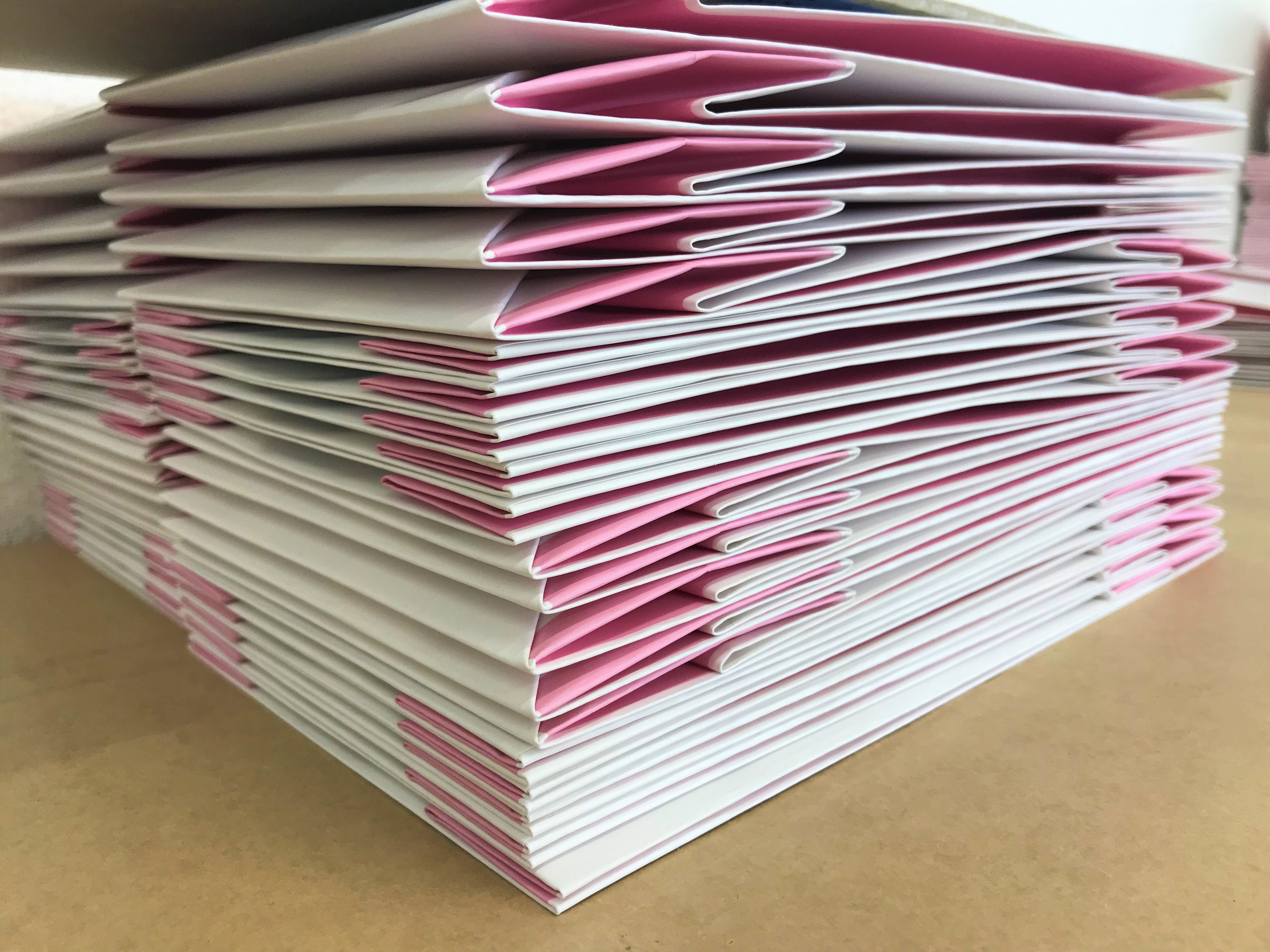 こんにちは!まっつんです 今日は作業スペースに潜入してみましょう! 製袋スタッフみーたんによる指導のもと スタッフが手作業で製袋を進めております。 現在お作りしている袋は眼鏡ショップ様の製品です。 部屋中、春らしいのお色サクラに包まれて とても心癒される空間が広がっています(#^^#) 👜【仕様】 紙:コート紙 加工:マットPP 紐:アクリル丸紐 紐色:ベビーピンク