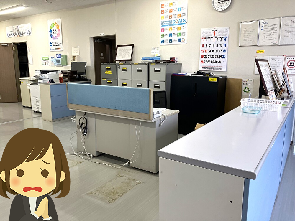 こんにちは!まっつんです 今日は私の席をもよう替えしました! 弊社ホームページに掲載されている写真から 赤丸の席をここ数年フリースペースとして使っていましたが 思いっ切って撤去することにしました!! とりあえず私の机に荷物を寄せて… 長年の床の汚れが目立ちますね💦 洗剤で拭いてもなかなか落ちません。 ここの席は受付にあるため来客の目が届くところ。 さらにデスクを動かしてみました! 少しは隠れましたがこれで汚れは見逃しません!! 適した溶剤を購入してとことん掃除していきます✨