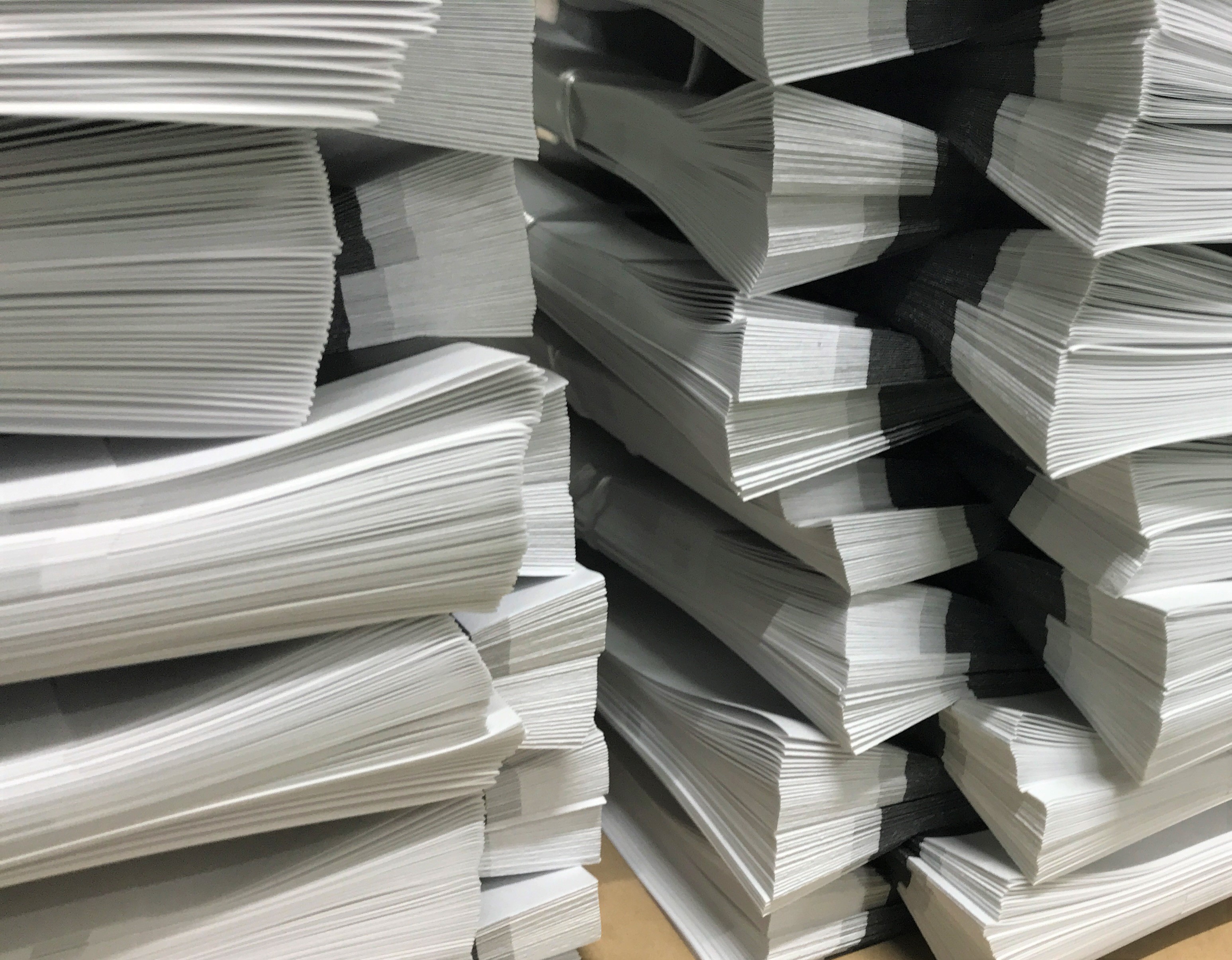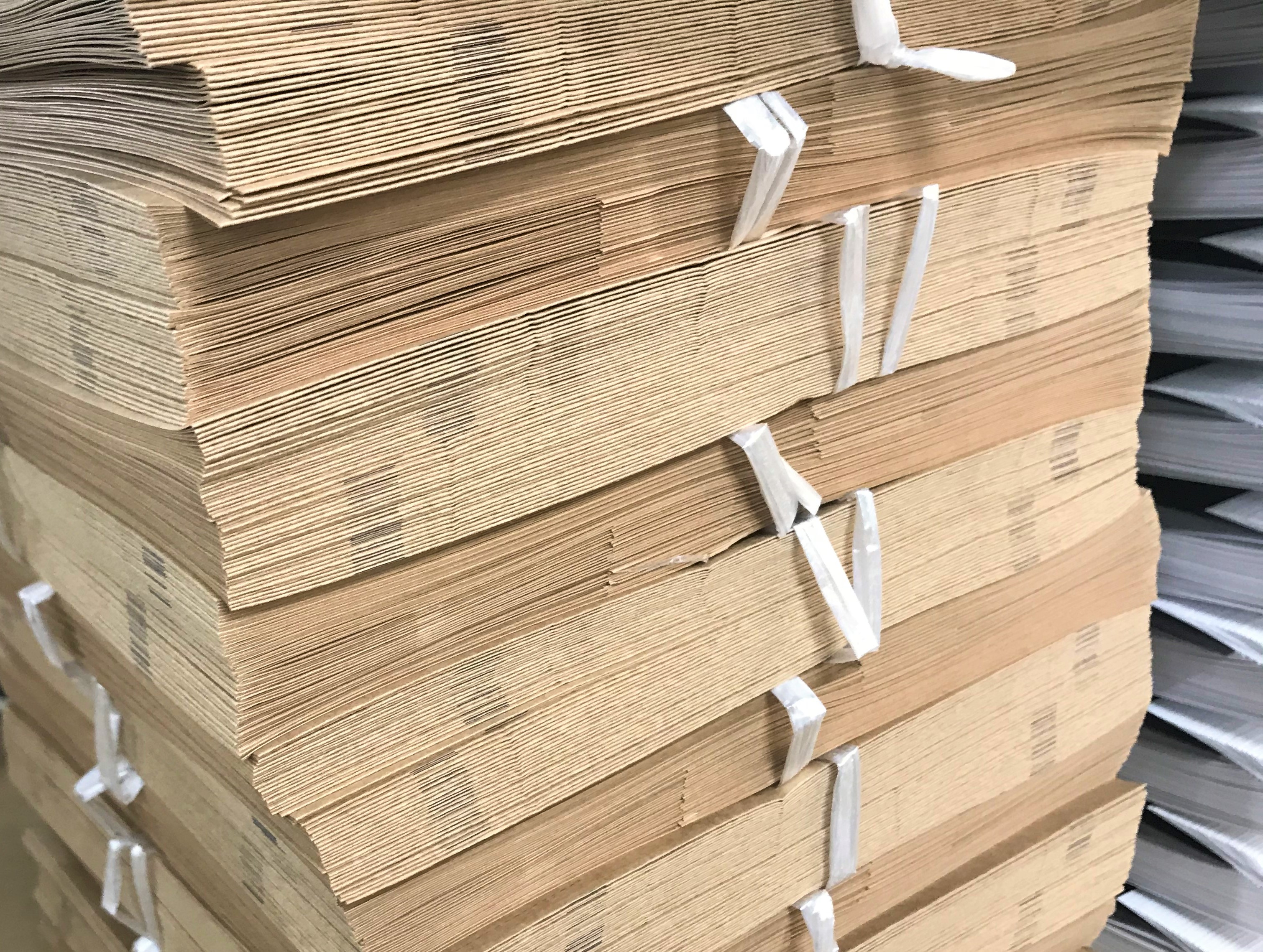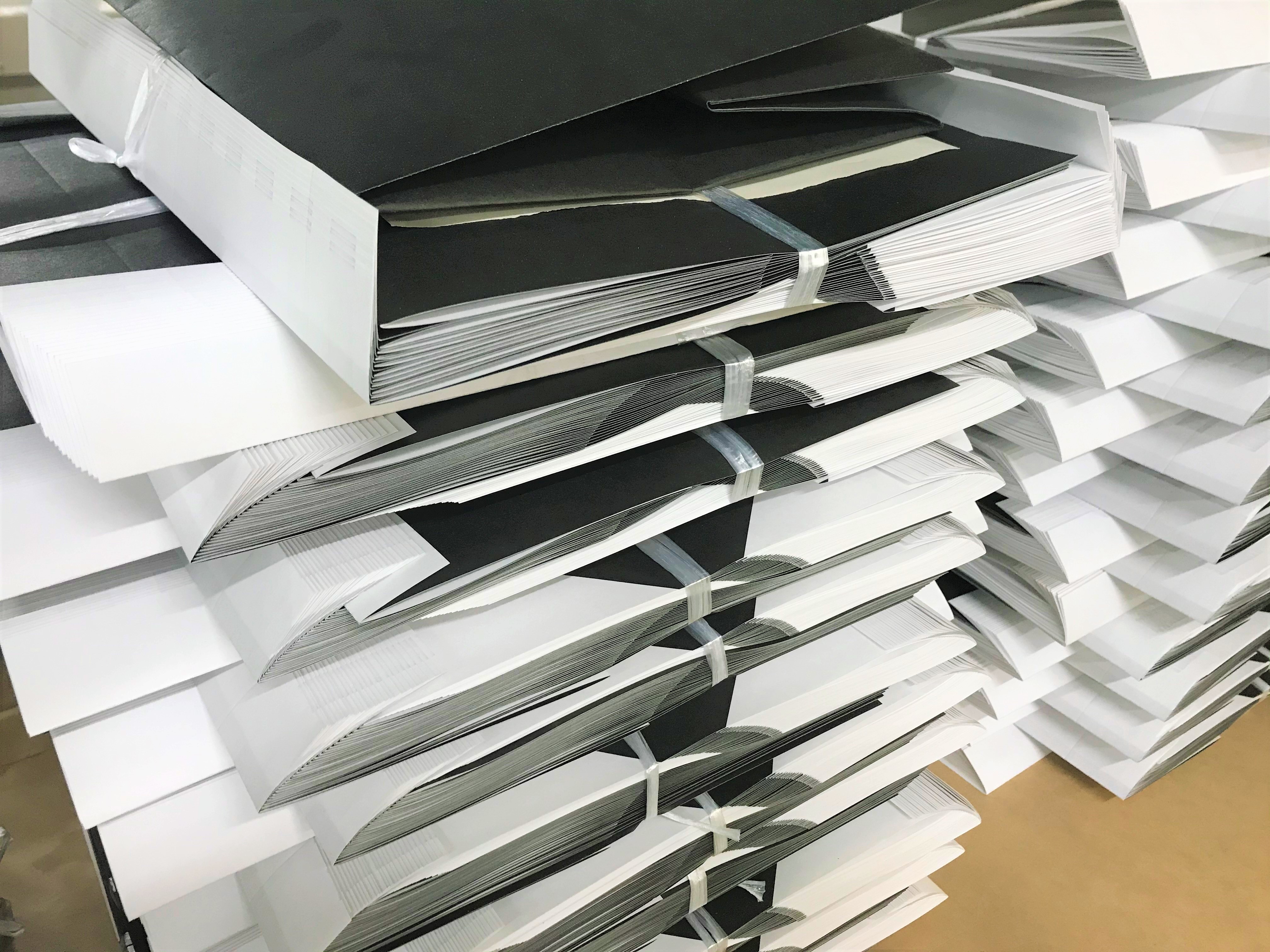 こちらは地元熊本のお客様。リピートいただきありがとうございます。一面黒のインクを乗せてありベンチタイムを経て折り目を入れた状態です。小さな白ロゴが入った高級感のある袋です。