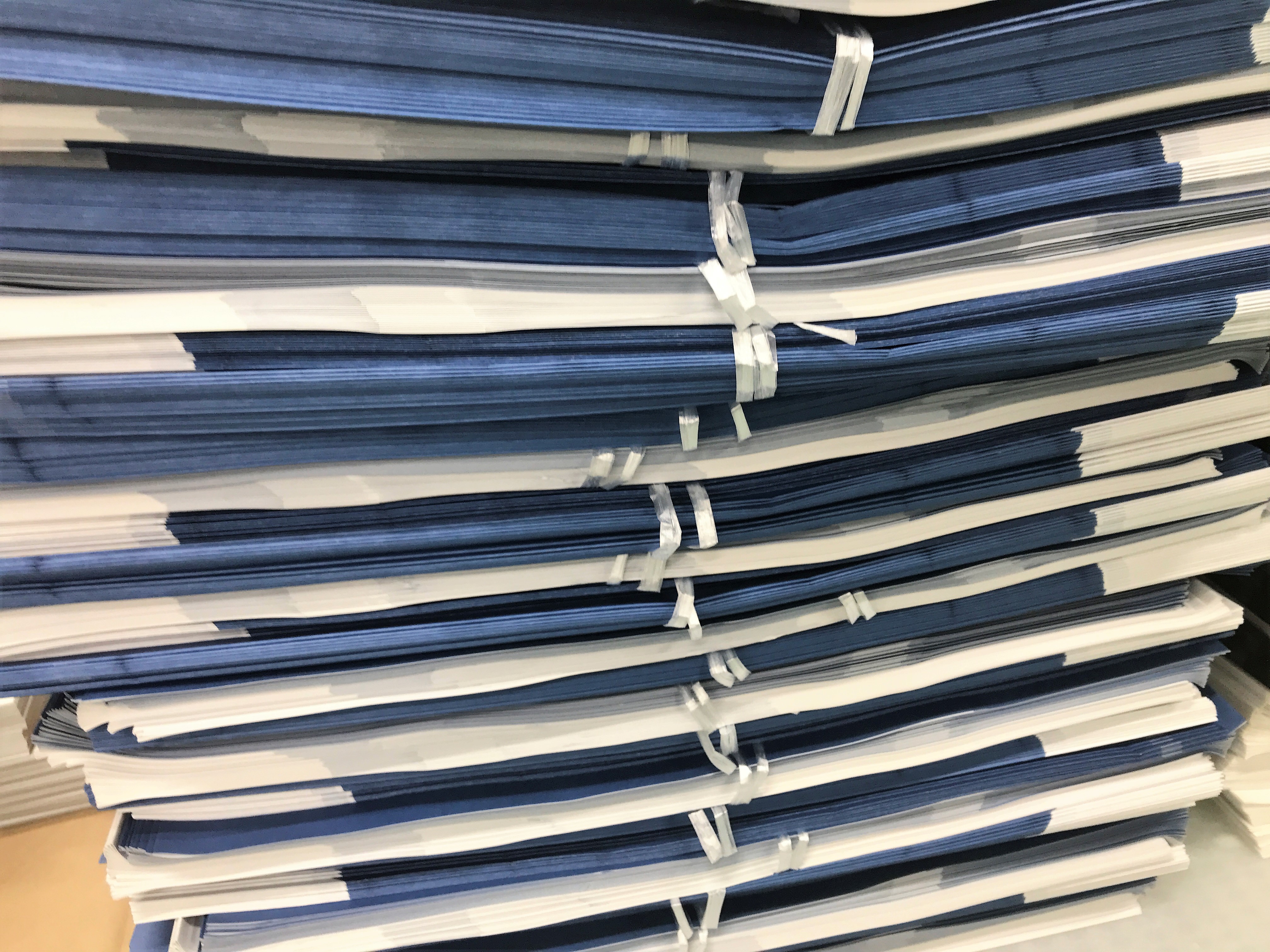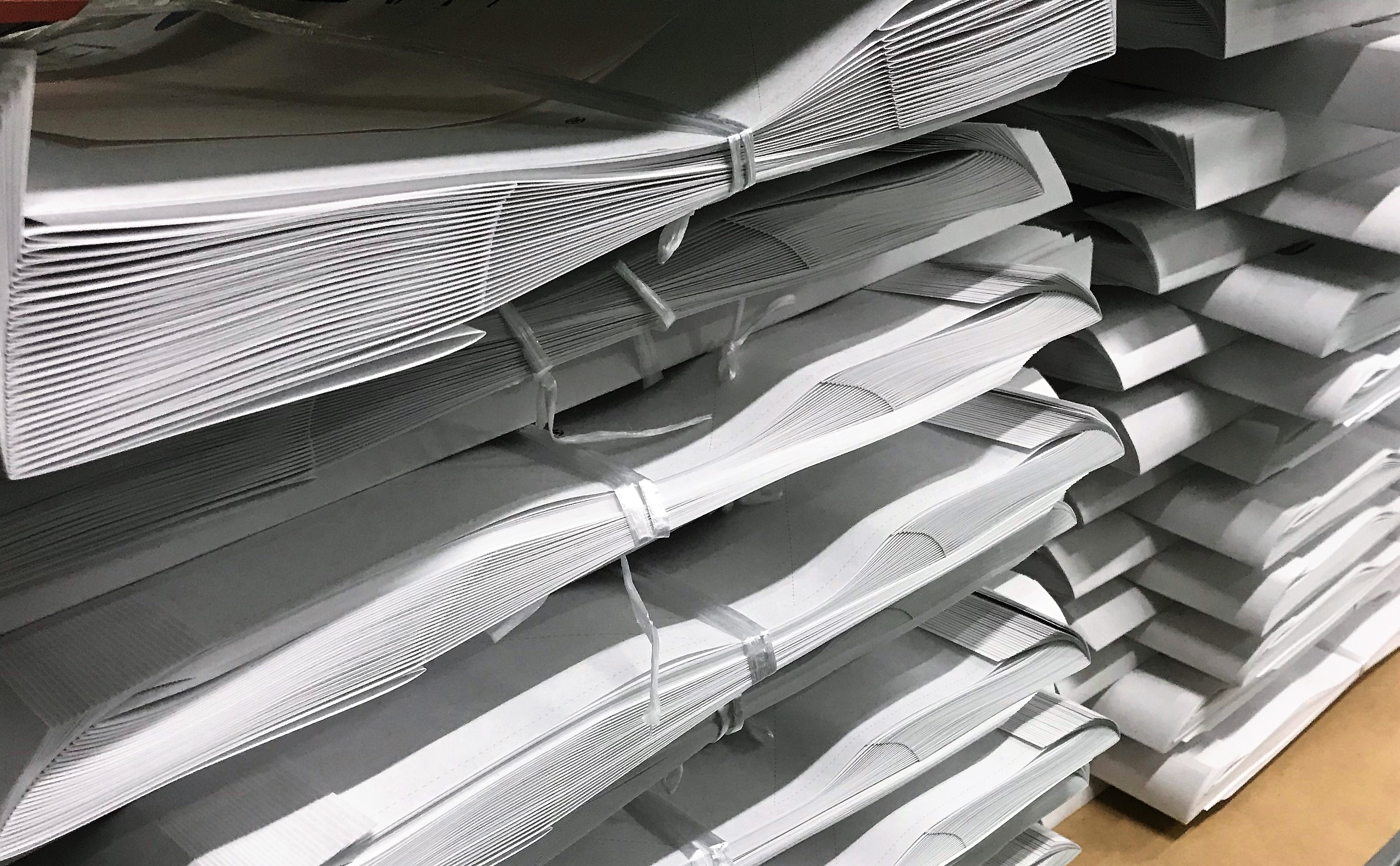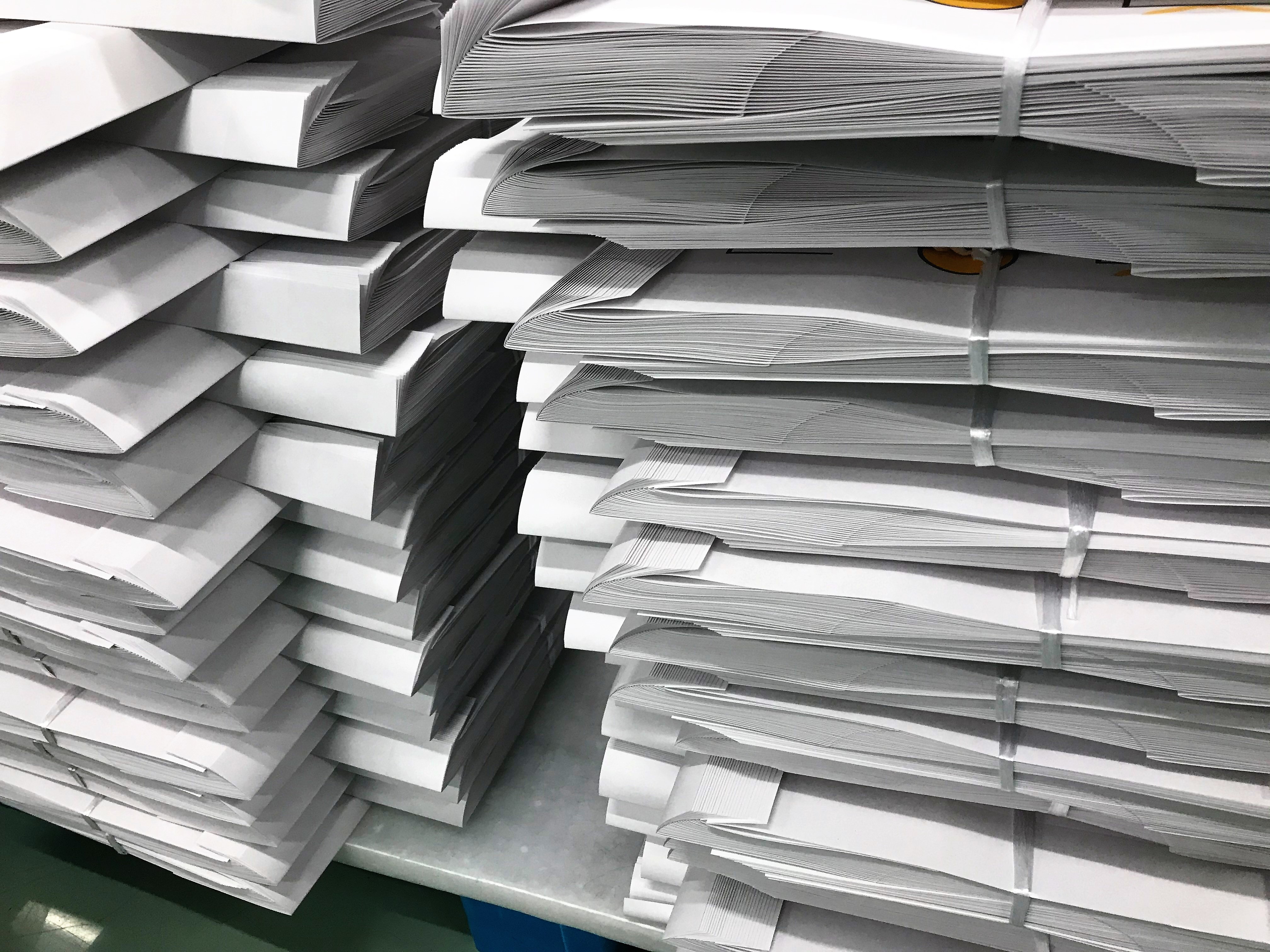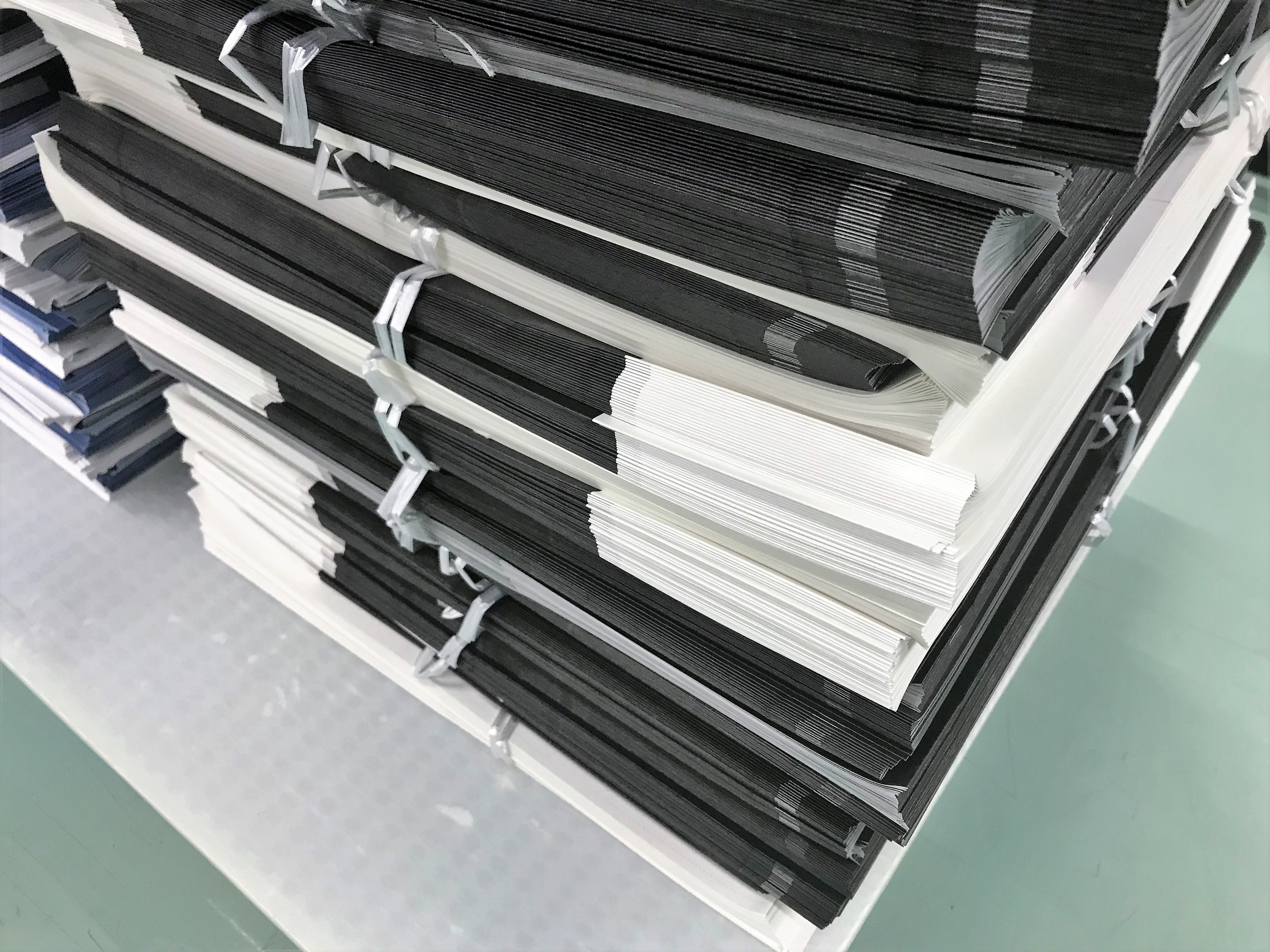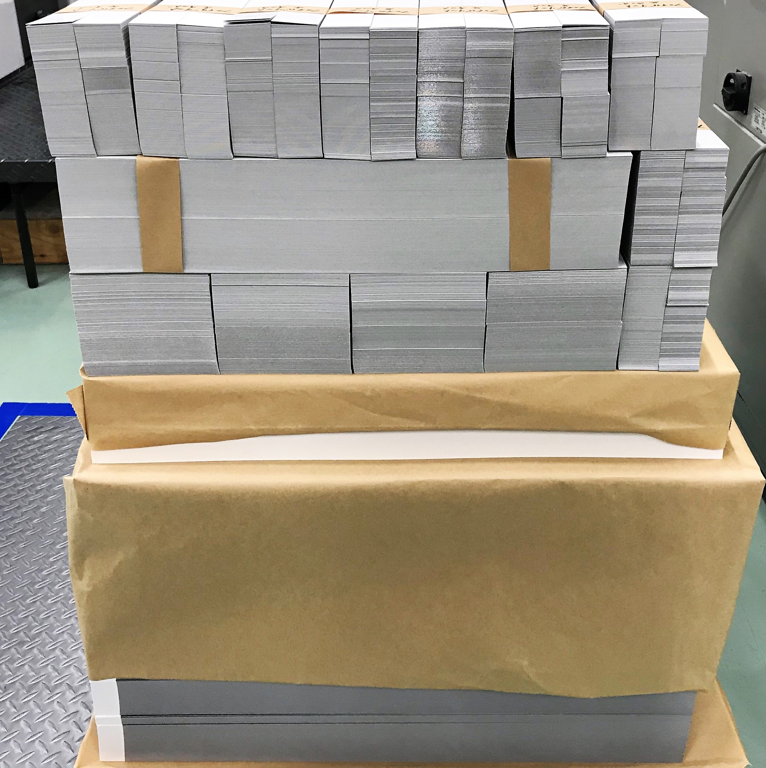 寸法に合わせ断裁し、きれいに積み重ねてあります。