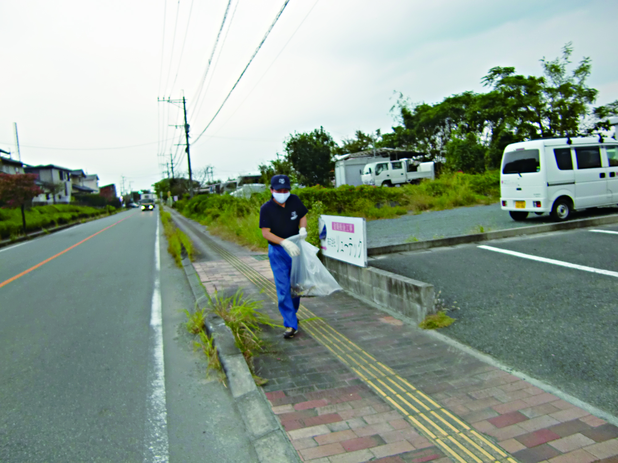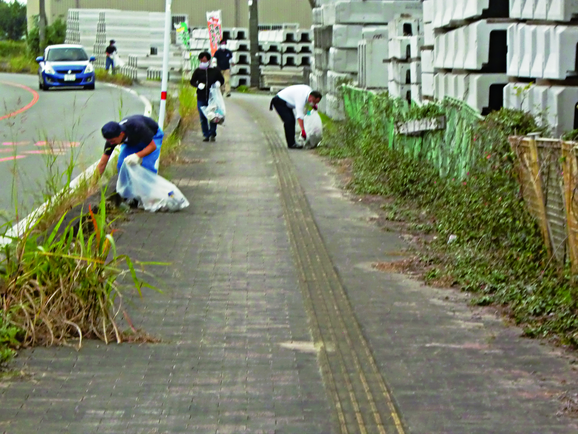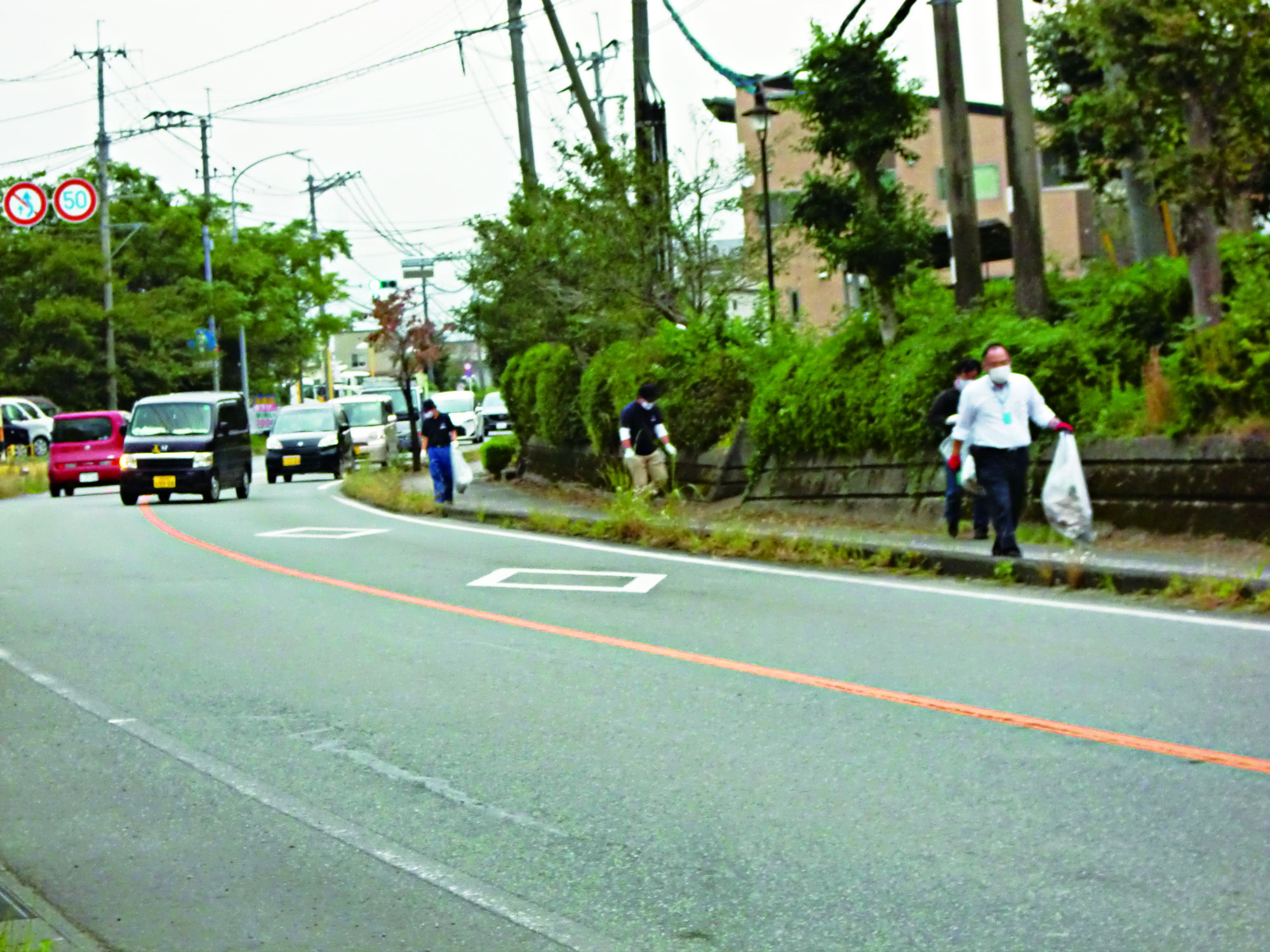 自動車・自転車など交通量の多い通りだけにゴミも多く、一歩一歩しっかりと見逃さないようにしていきます。