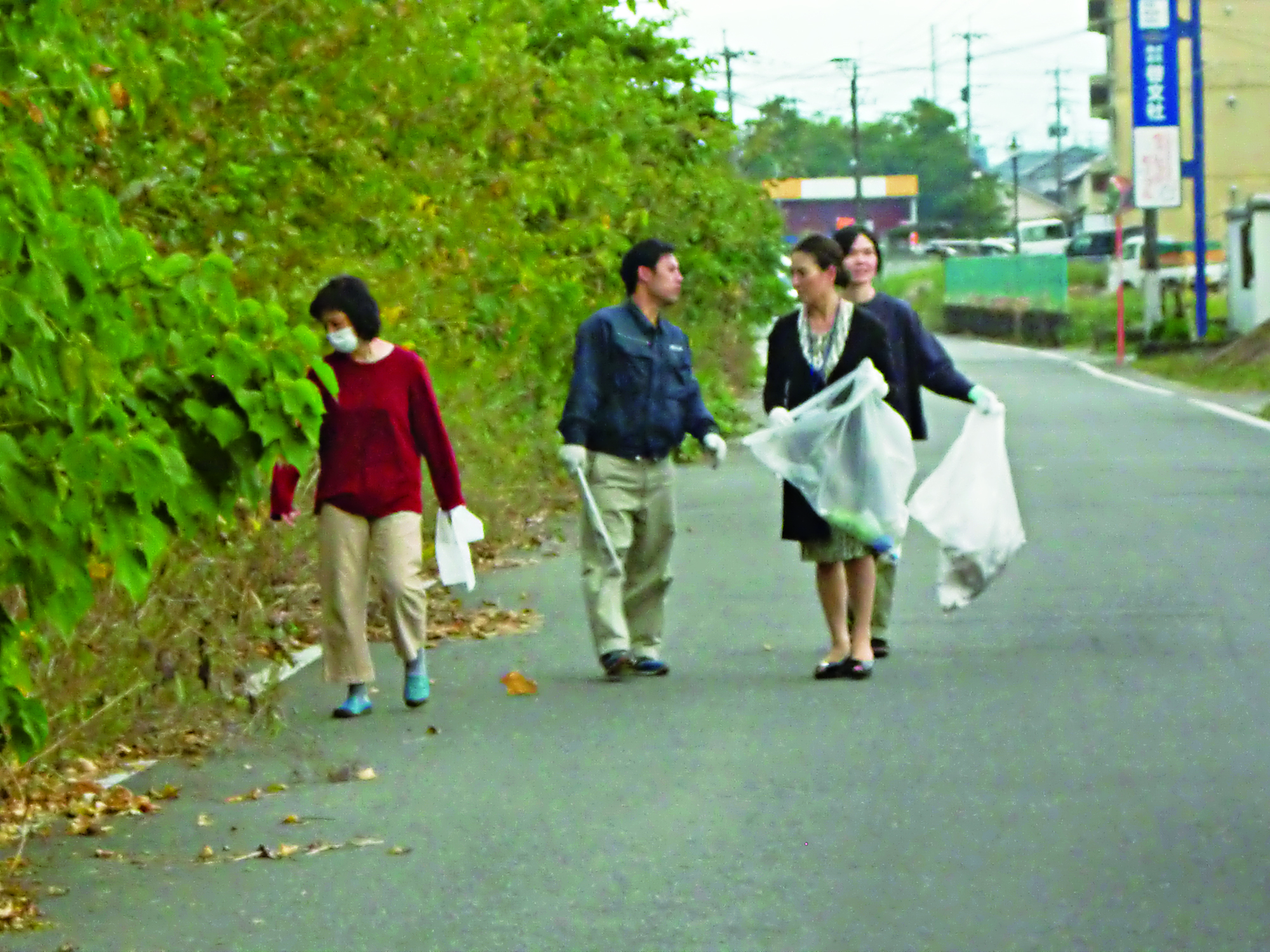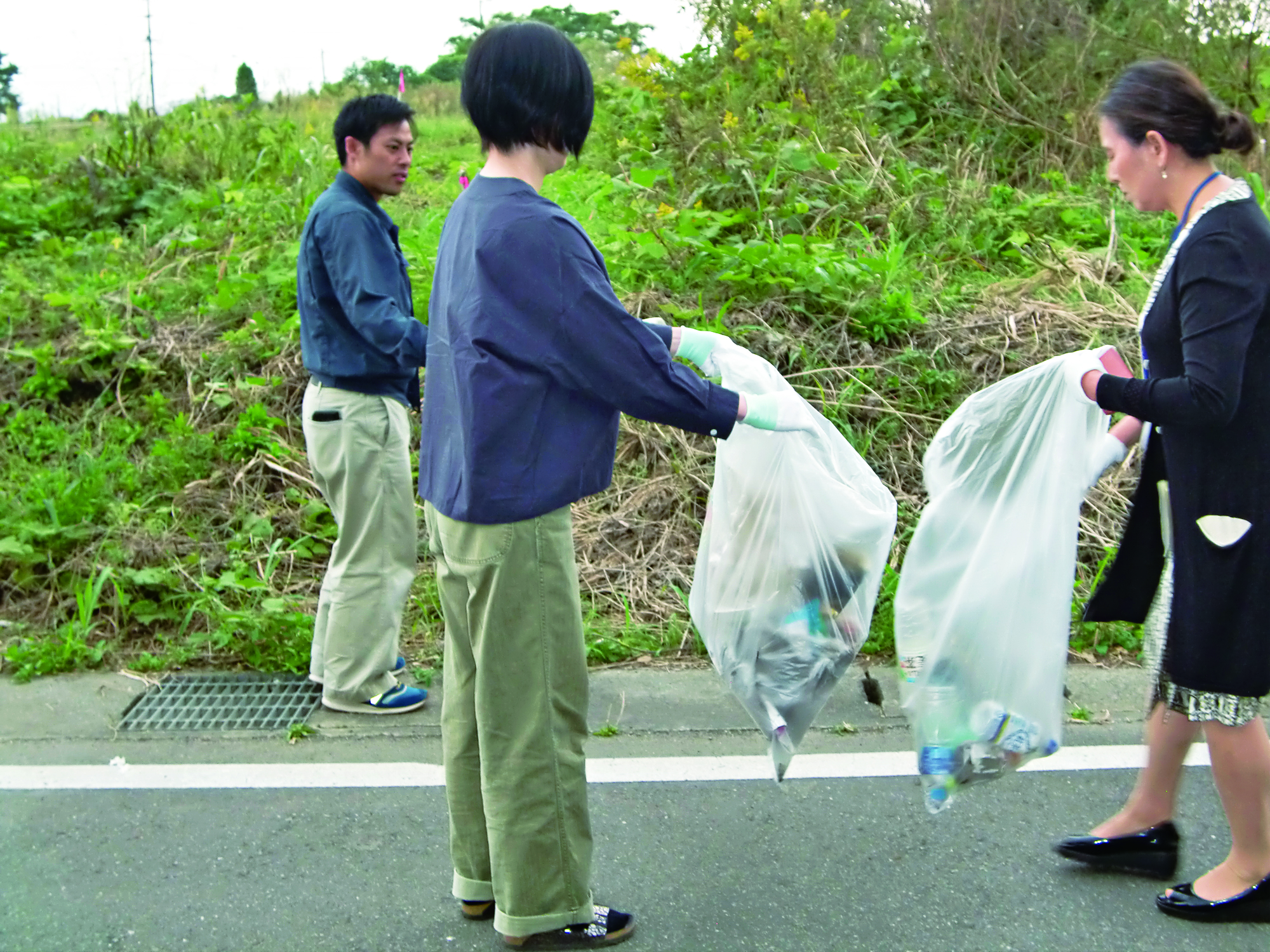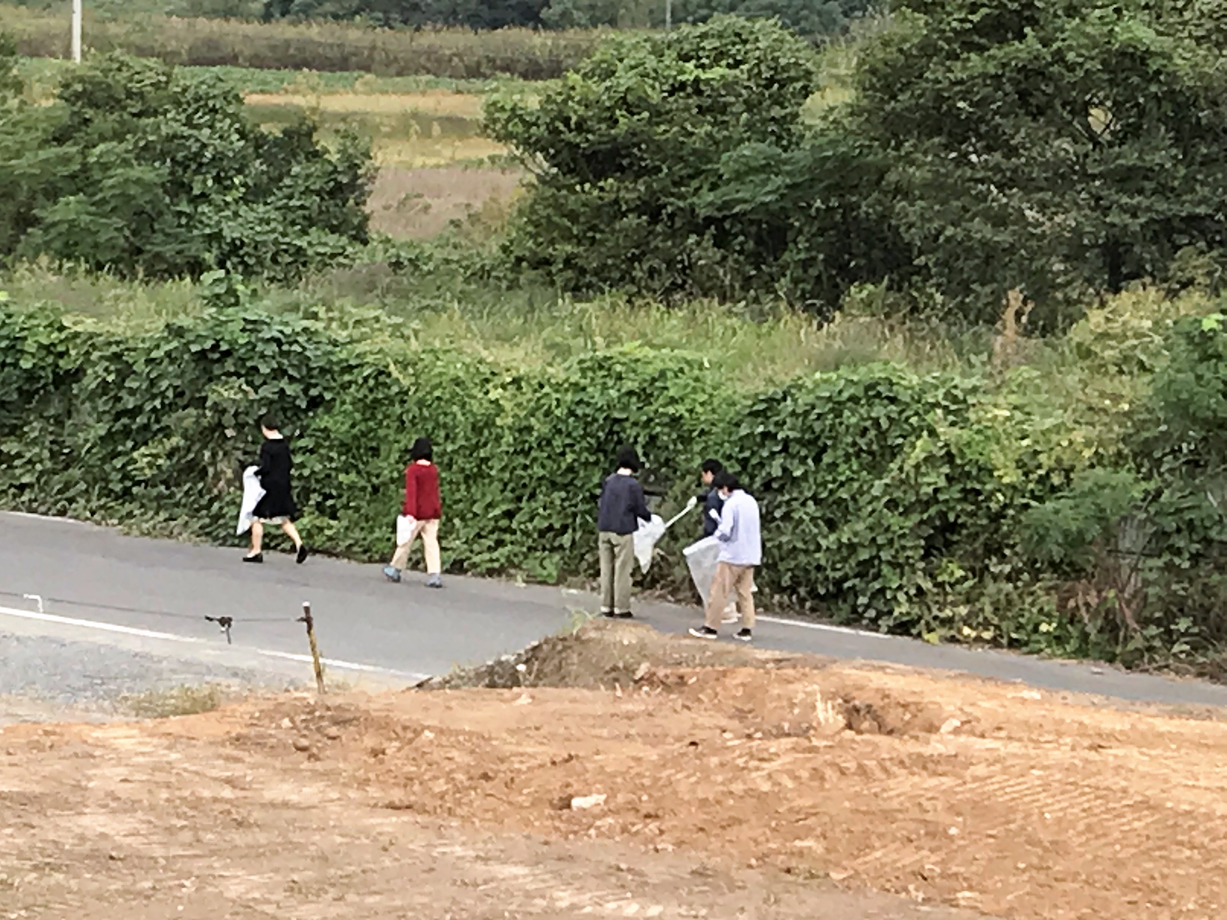 車に注意しながら雑草に隠れているゴミも拾っていきます。ちなみに歩道・車道問わず一番目立ったのはタバコのゴミでした。