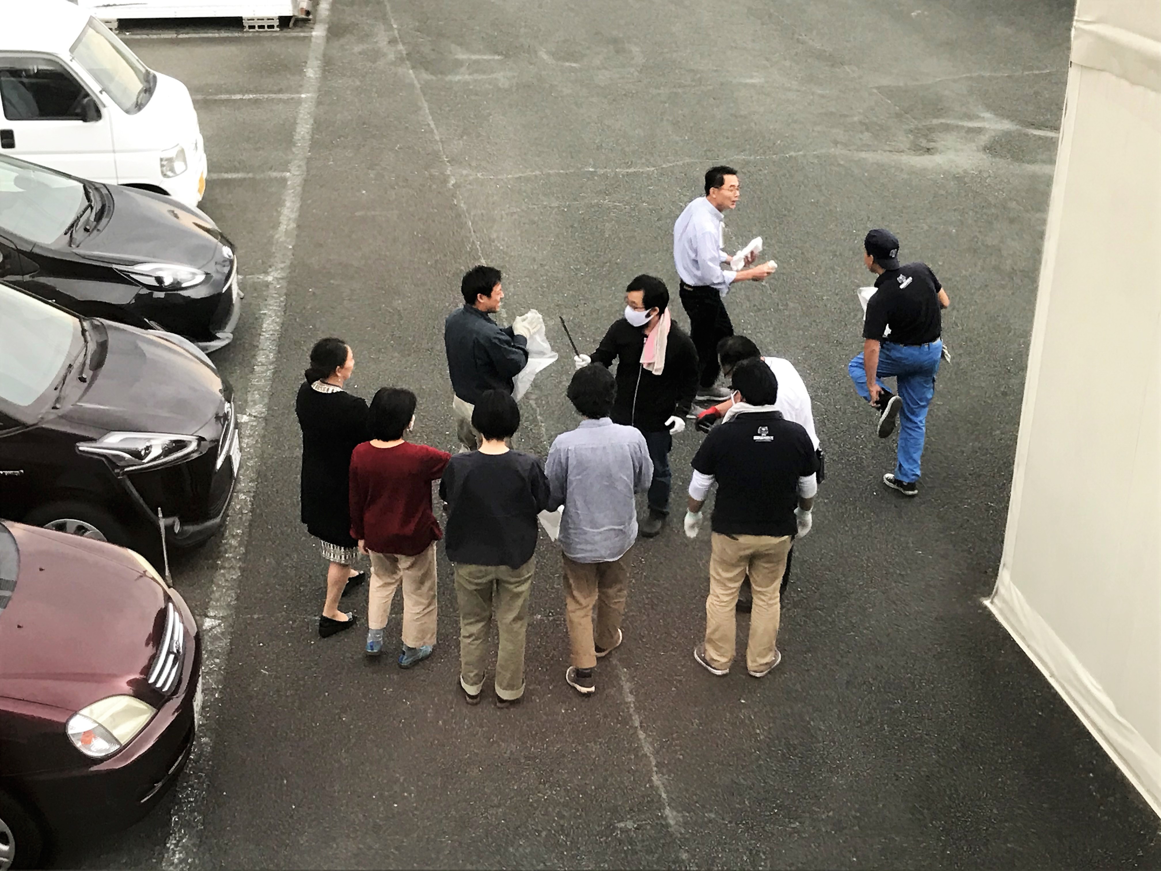 二手に分かれて会社周辺をしっかりと綺麗にしていきます。こちらは社長率いるAチーム。