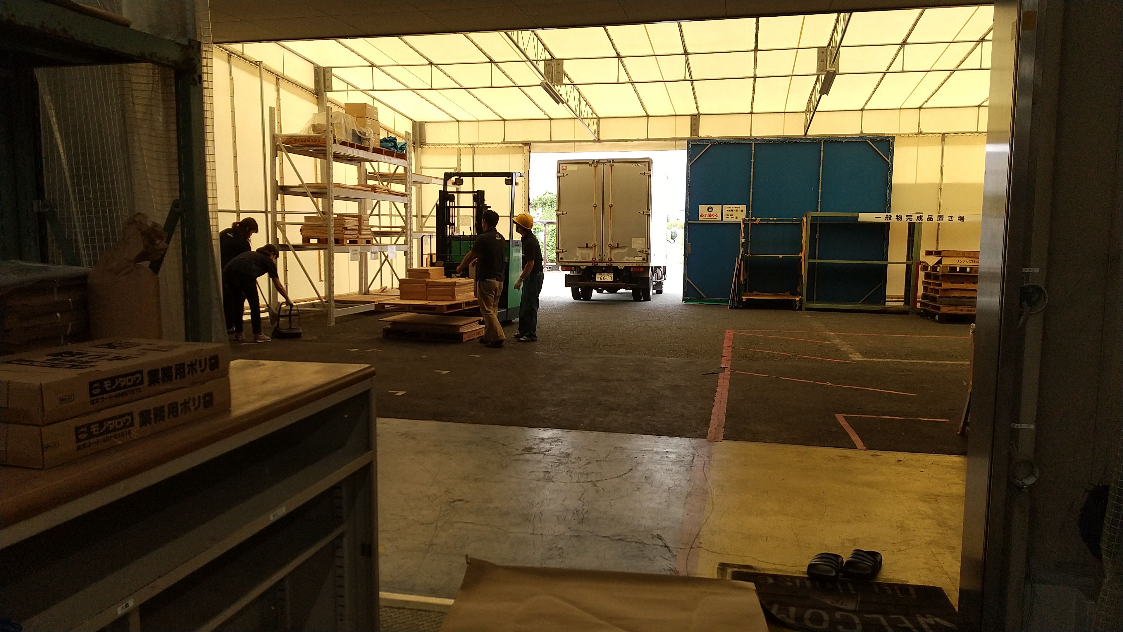 テント倉庫に置いていた資材等を工場内へ避難させました。