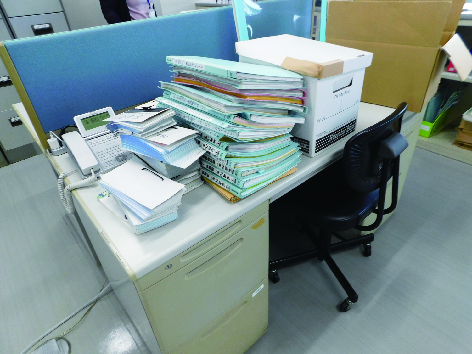 余っていたカートを利用し、回収紙置き場に。明確な仕切りができたことで見た目も良くなった上に、扉まで手で運んでいただいていた回収業者さんの負担も軽減できました。