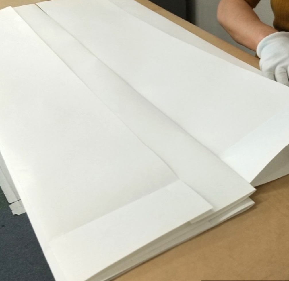 胴のマチ部分を折る時は袋の筒状部に腕を入れて