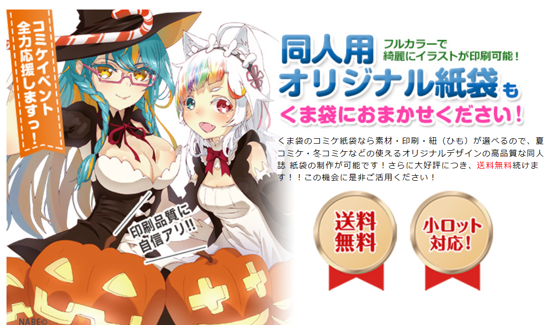 くま袋では同人用オリジナル紙袋のオーダーもいただいておりまして、毎年のビッグイベント『コミックマーケット』の前は多くのご依頼をいただいておりました。