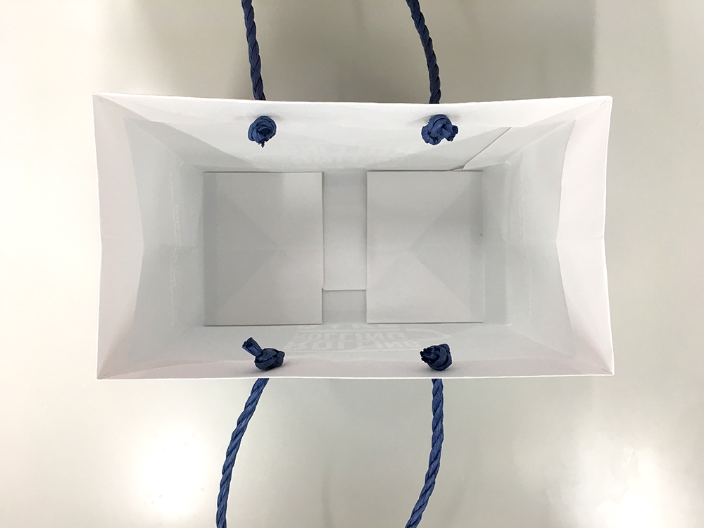 こちらの手提げ袋のポイントとして、底ボール紙を入れていないところですね(画像4枚目で確認できます)