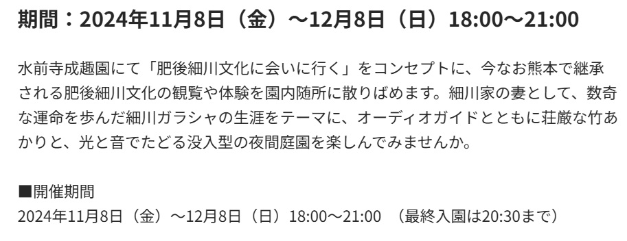 熊本市の水前寺成趣園にて開催中のイベントで日本庭園をプロジェクションマッピングで彩るものなんですが…