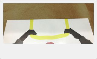 袋の上部に、ある動物がぶら下がっている手の絵柄が印刷されていて、持ち手の紐をセッティングすることで