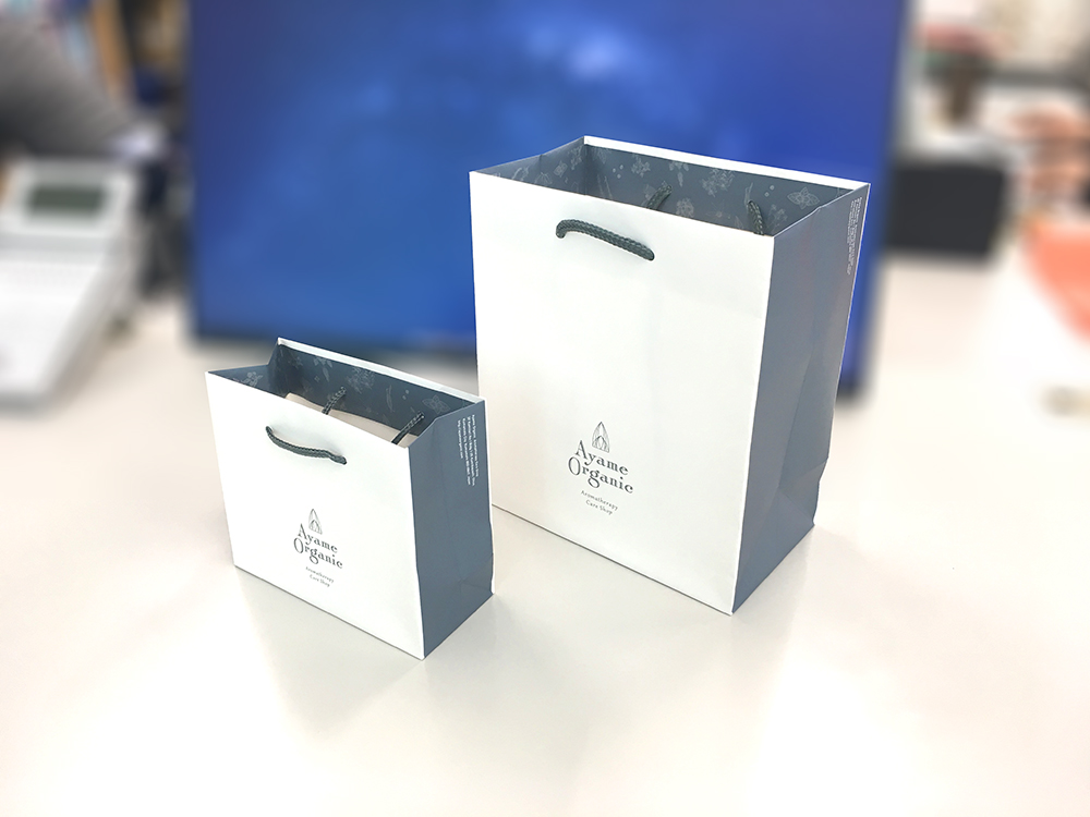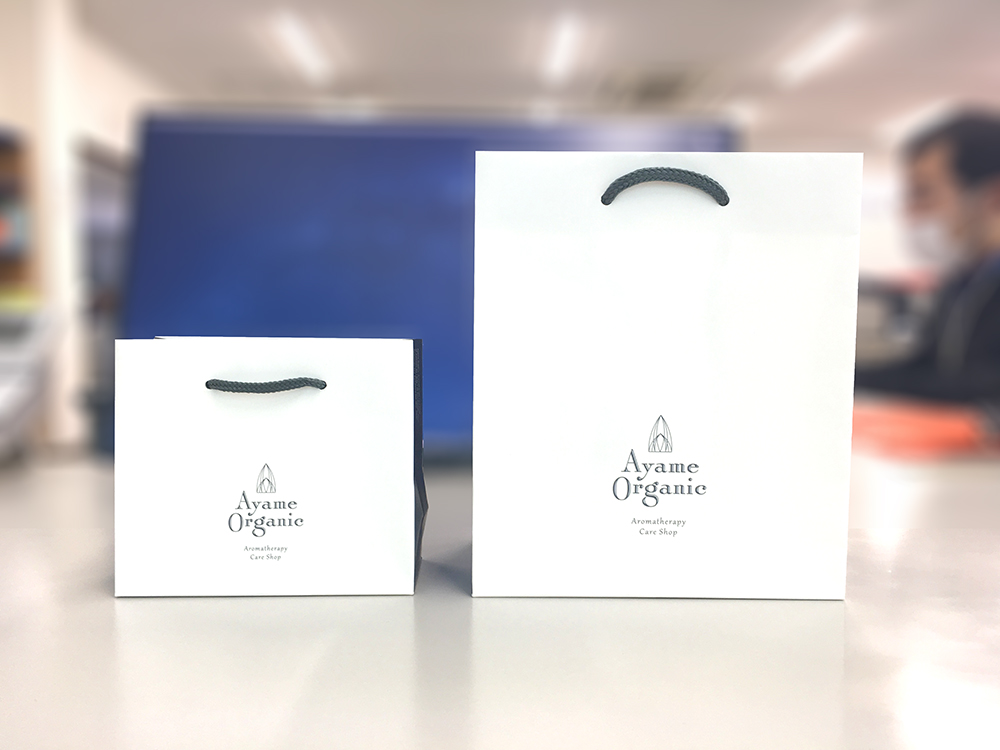 当サイトの『制作実績』ページにも掲載させていただいております、Ayame Organic様オリジナル手提げ袋になります。