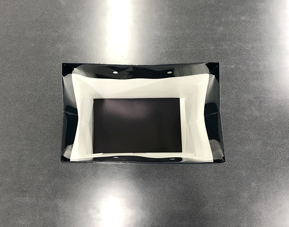 更には、袋の底に敷いてあるボール紙まで濃紺の印刷をして、