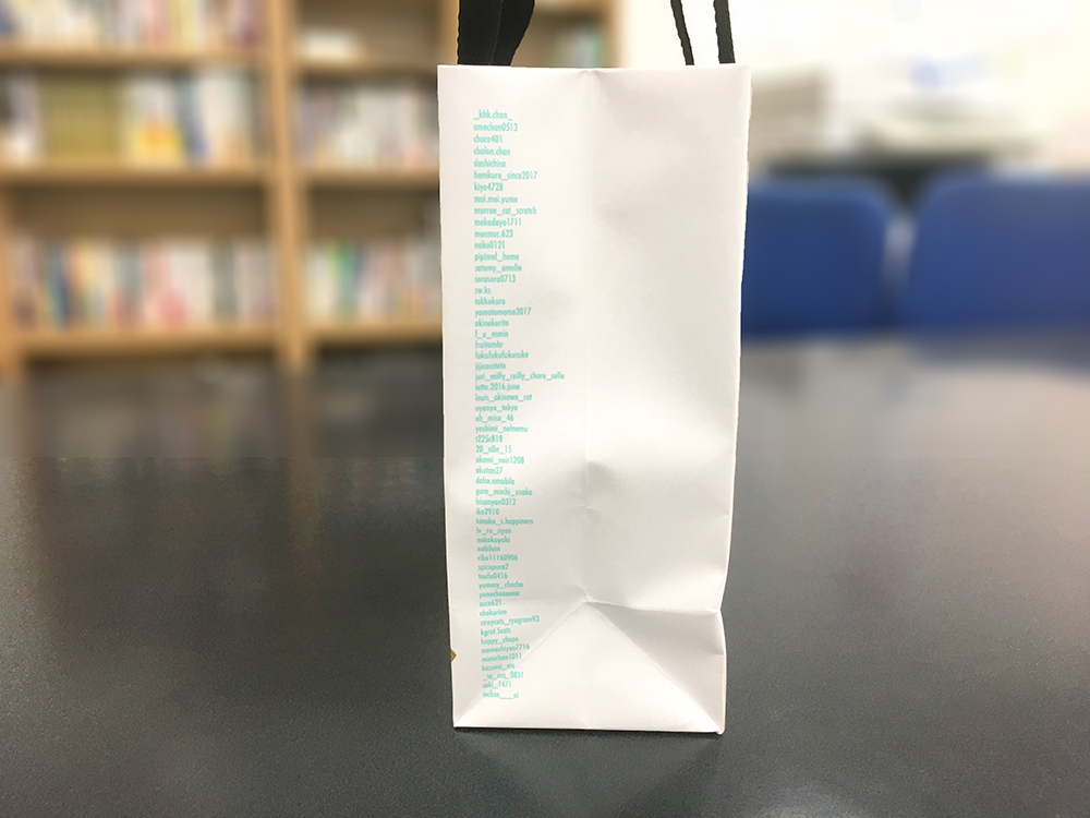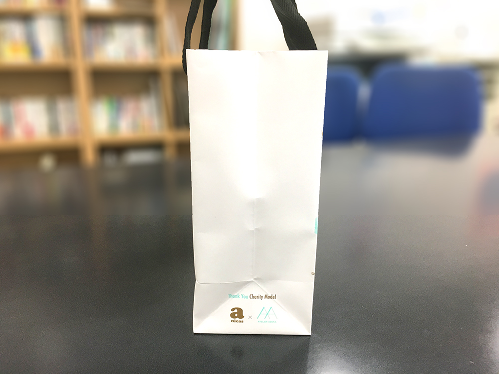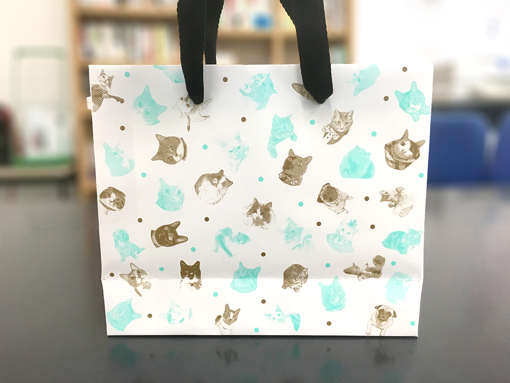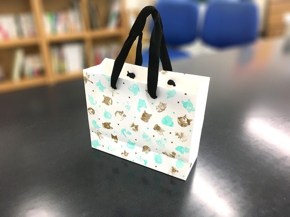 紙袋は、保健所から保護した動物さんや飼い主のいない動物さん達の里親探しをされている動物愛護団体様への寄付のためチャリティペーパーバッグとして作成致しました。
