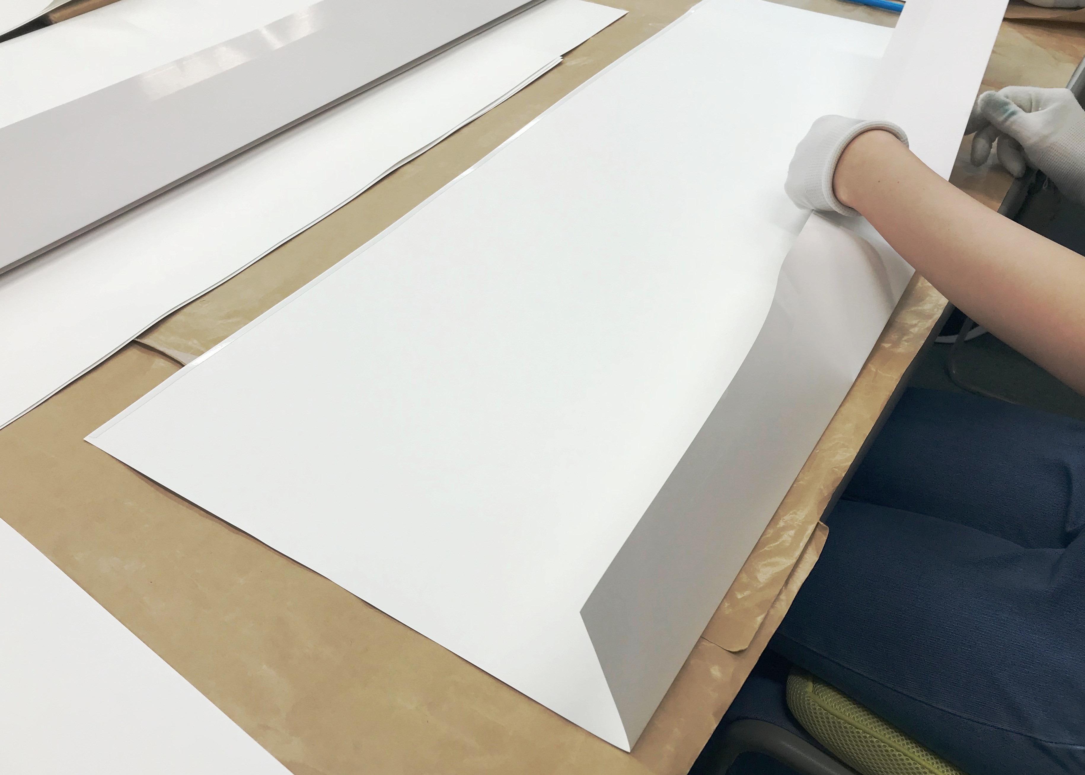 「いつもの感覚で折れば両端の幅は2,3mmズレてしまう。両端、真ん中と定規を当てて計測しながらやらないと最終工程で歪みが出て美しくない!」