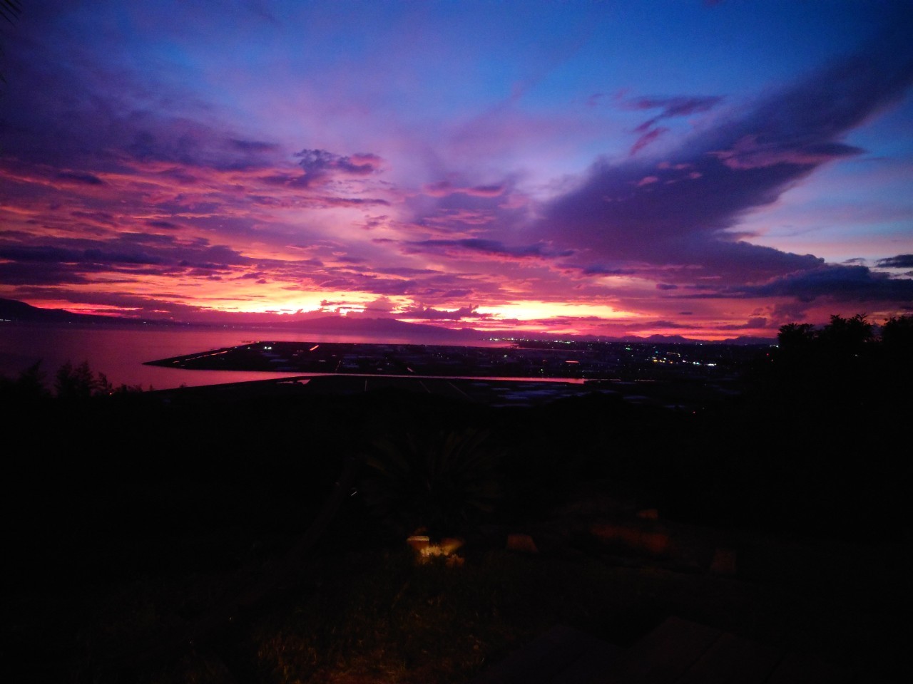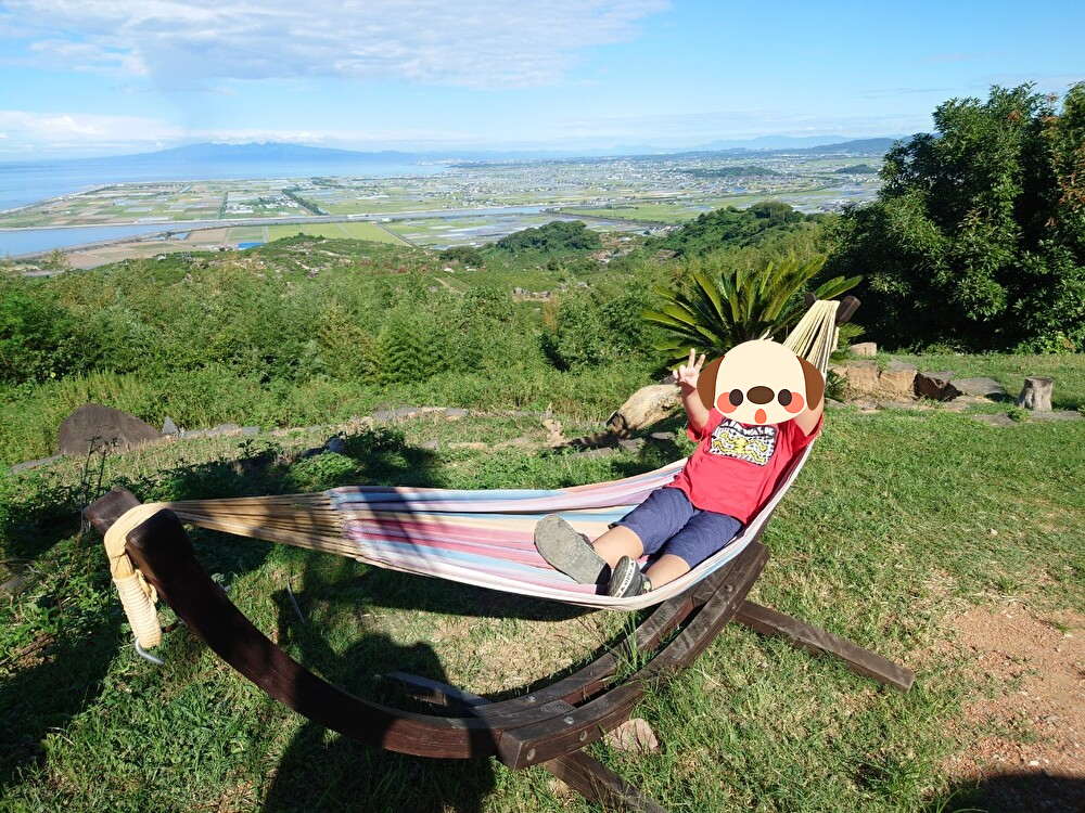 こんにちは!まっつんです 先日お休み家族と熊本市西区河内町に行ってきました。 有明海に面した温暖な気候で、山にはミカンの段々畑が広がっています。 丘からの眺めは絶景で、有明海の先には長崎県島原市の雲仙普賢岳が望めます。 写真右側に写っていますが、海上でゲリラ豪雨発生中! ハンモックに揺られ、眼下に広がる景色を眺める息子 台風13号の影響で雲がかかり夕日が沈むシーンは見られなかったのですが燃えるような夕焼けに心打たれました!
