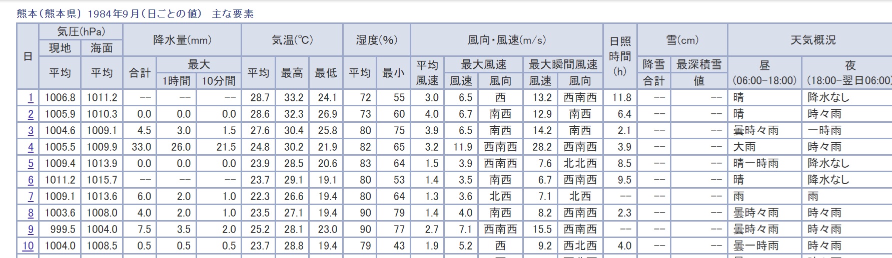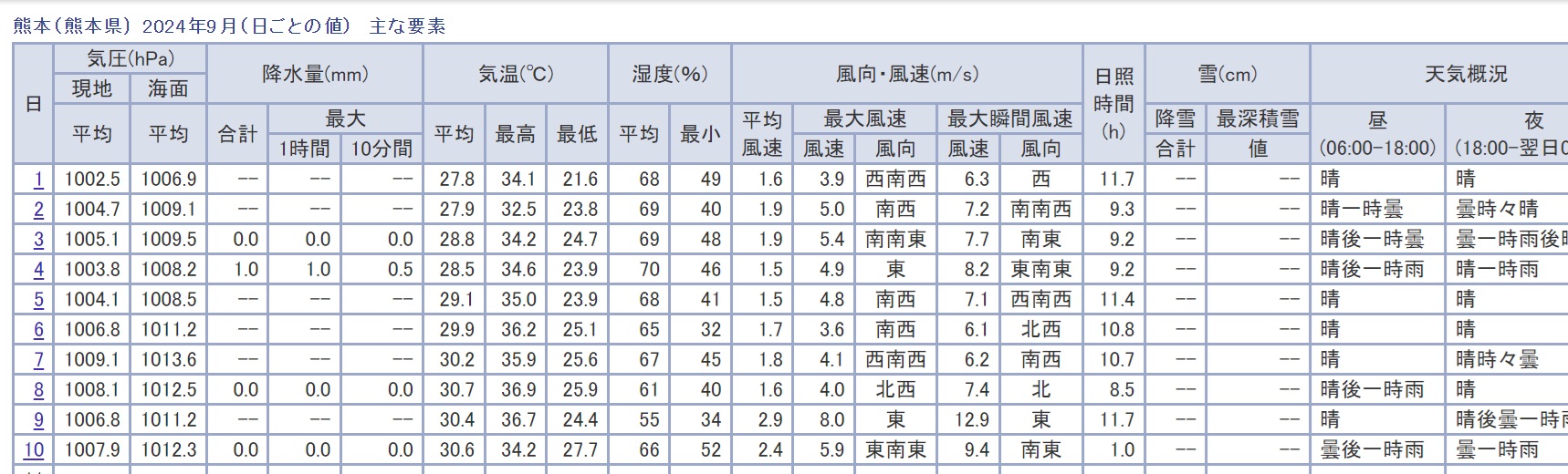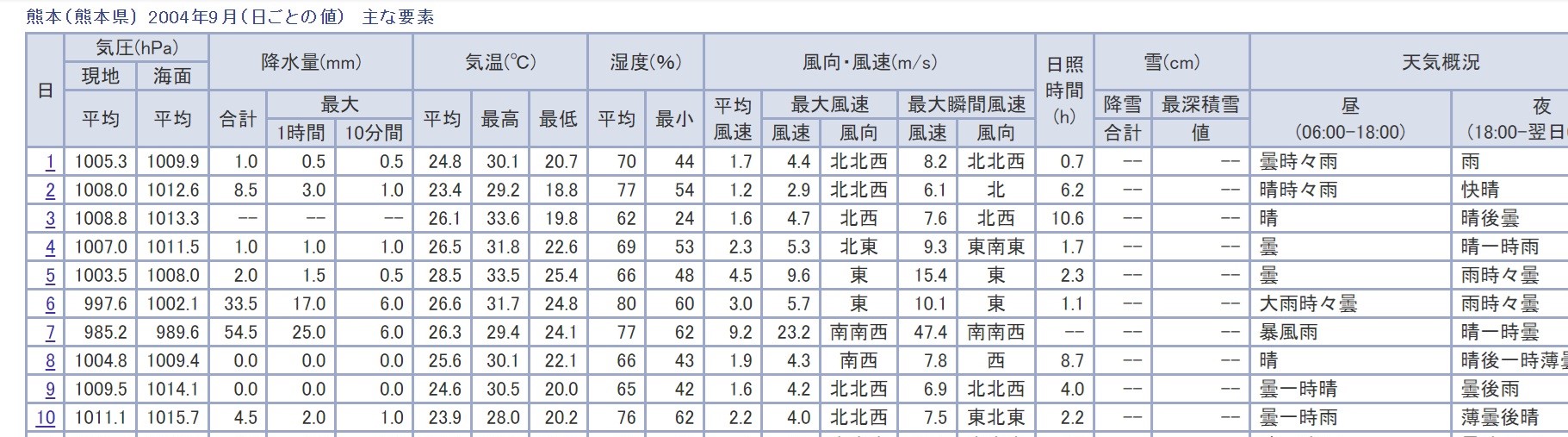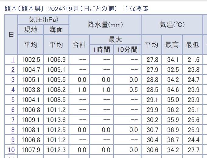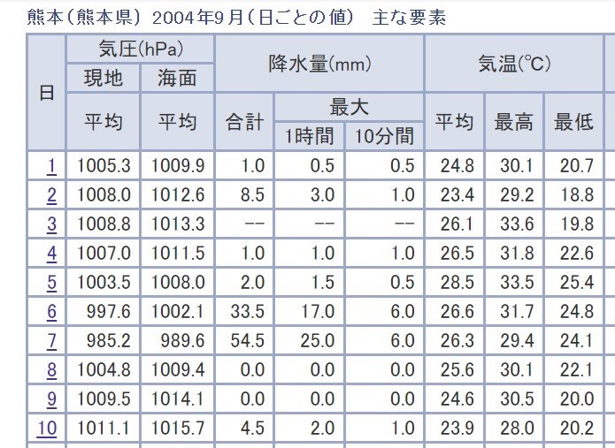 気になるので気象庁のサイトで過去データから