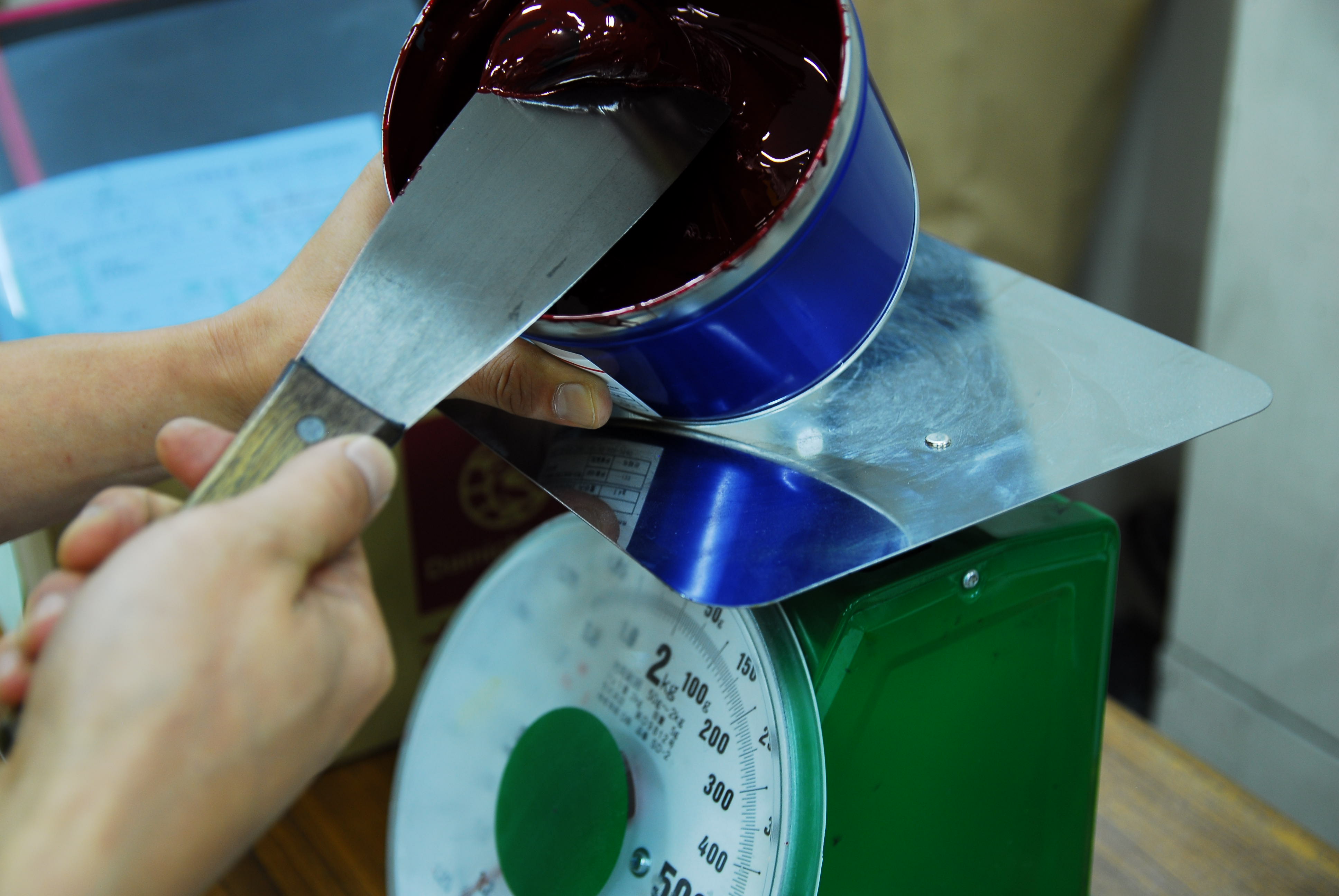 もちろん、自動的にインキを調合する装置もございます。しかし、正確で微妙な配合の場合は、やはり人の手によるものが精度が高いのです。